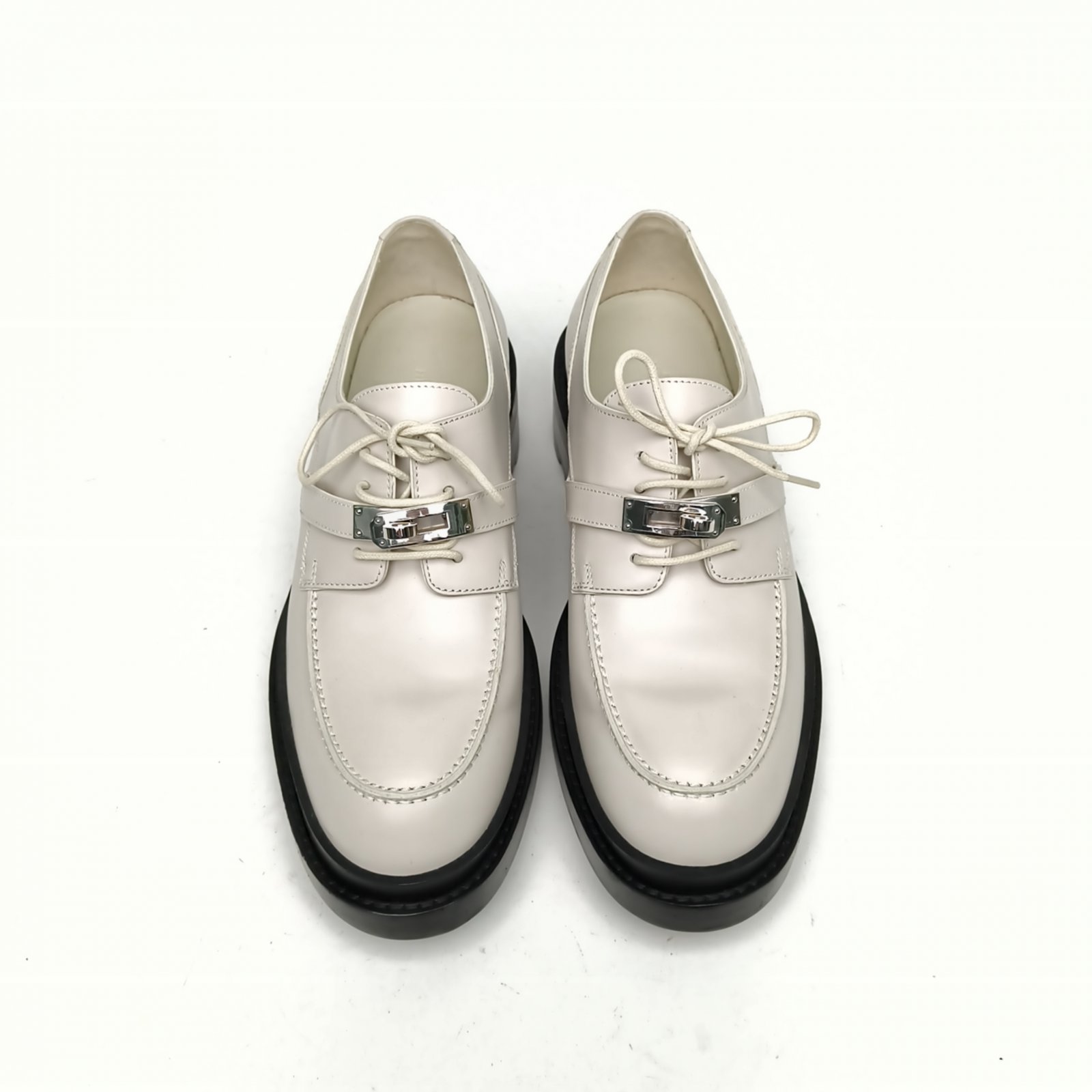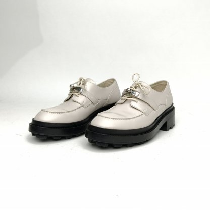 HERMES White kelly Martin boots Loafers 39