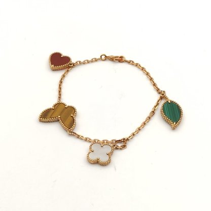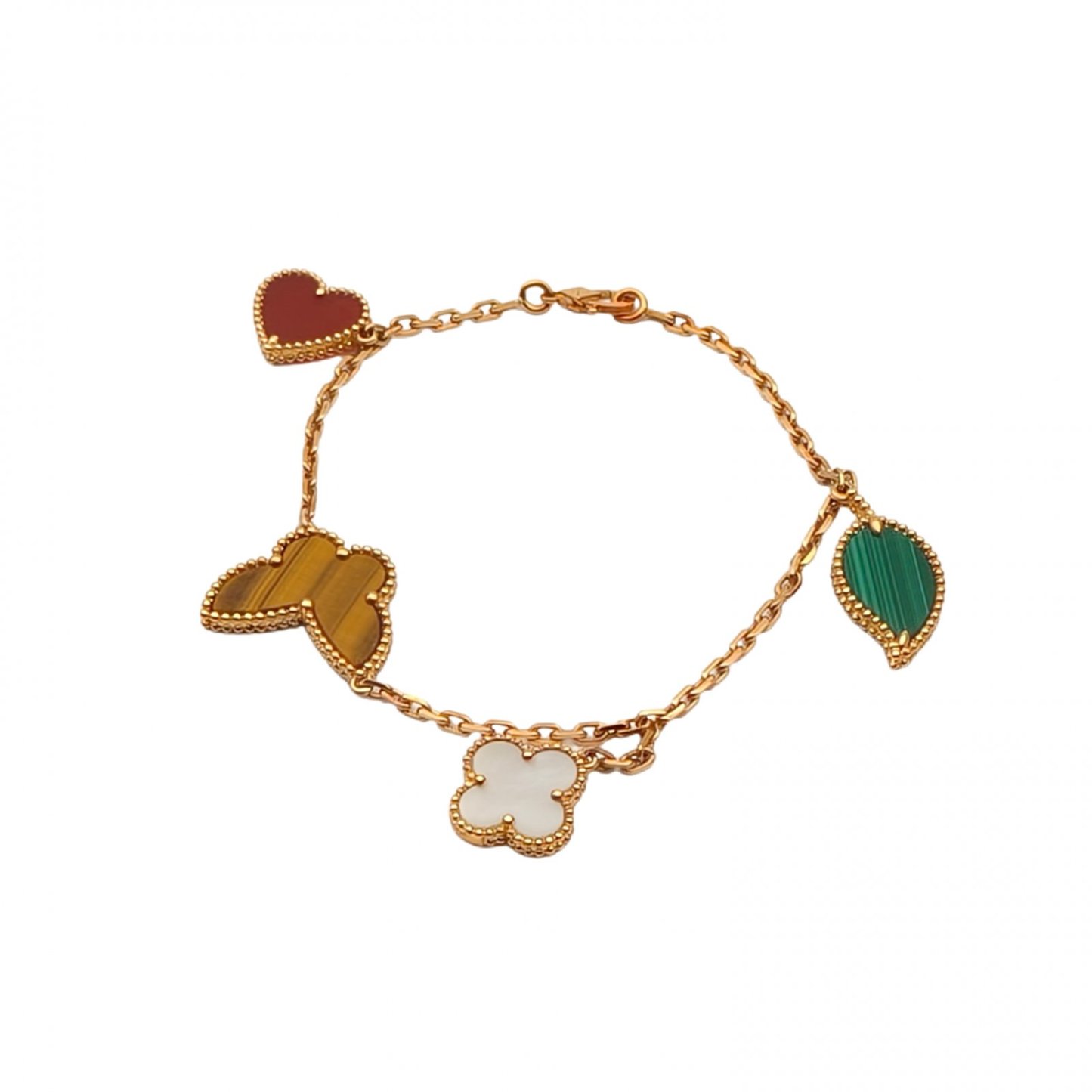 VAN CLEEF&ARPELS Lucky Alhambra Bracelet 4 motifs 18K Gold,Mother of Pearl,Malachite,Carnelian,Tigerite