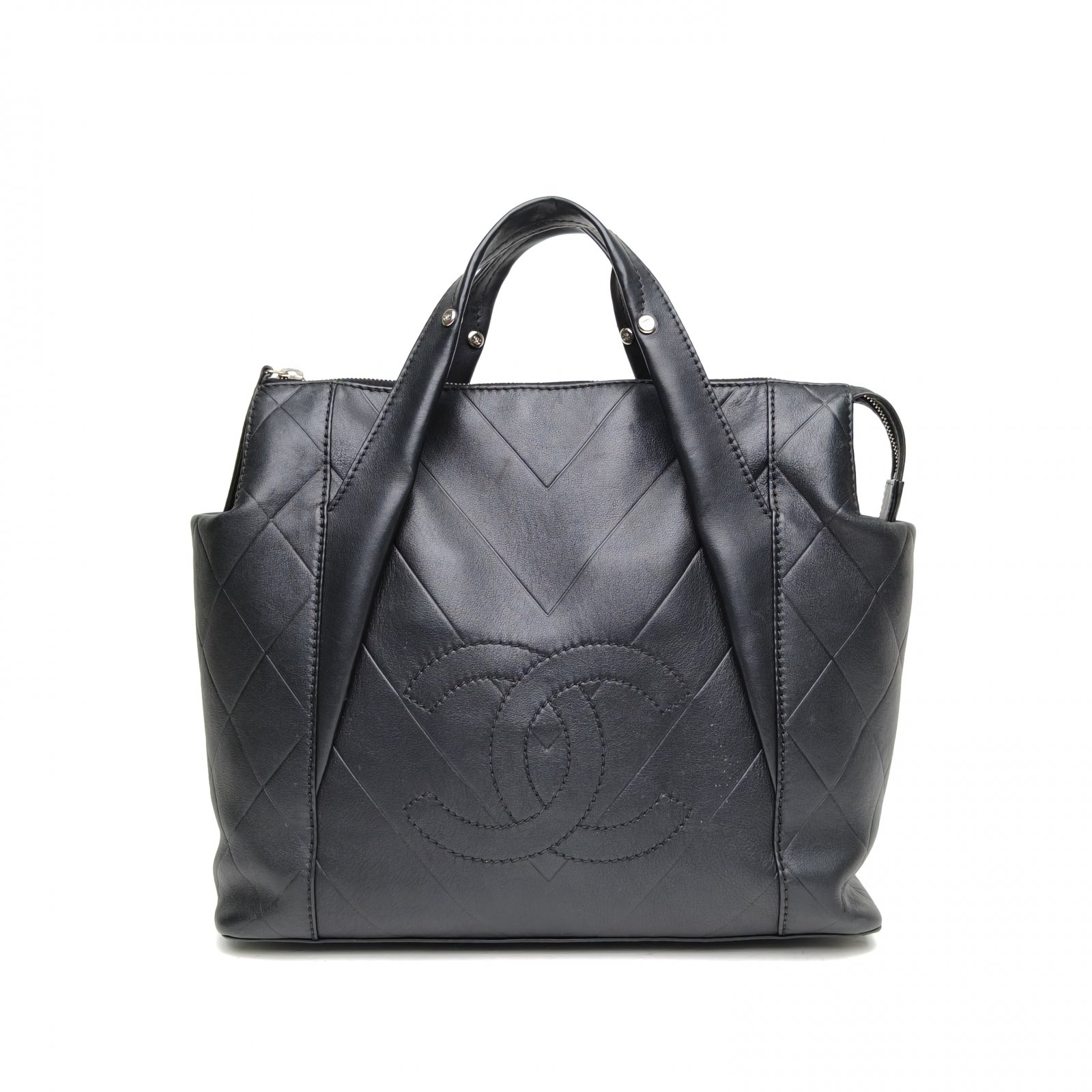 CHANEL Black 2007 Sliver Hardware Vintage Hand Tote Bag