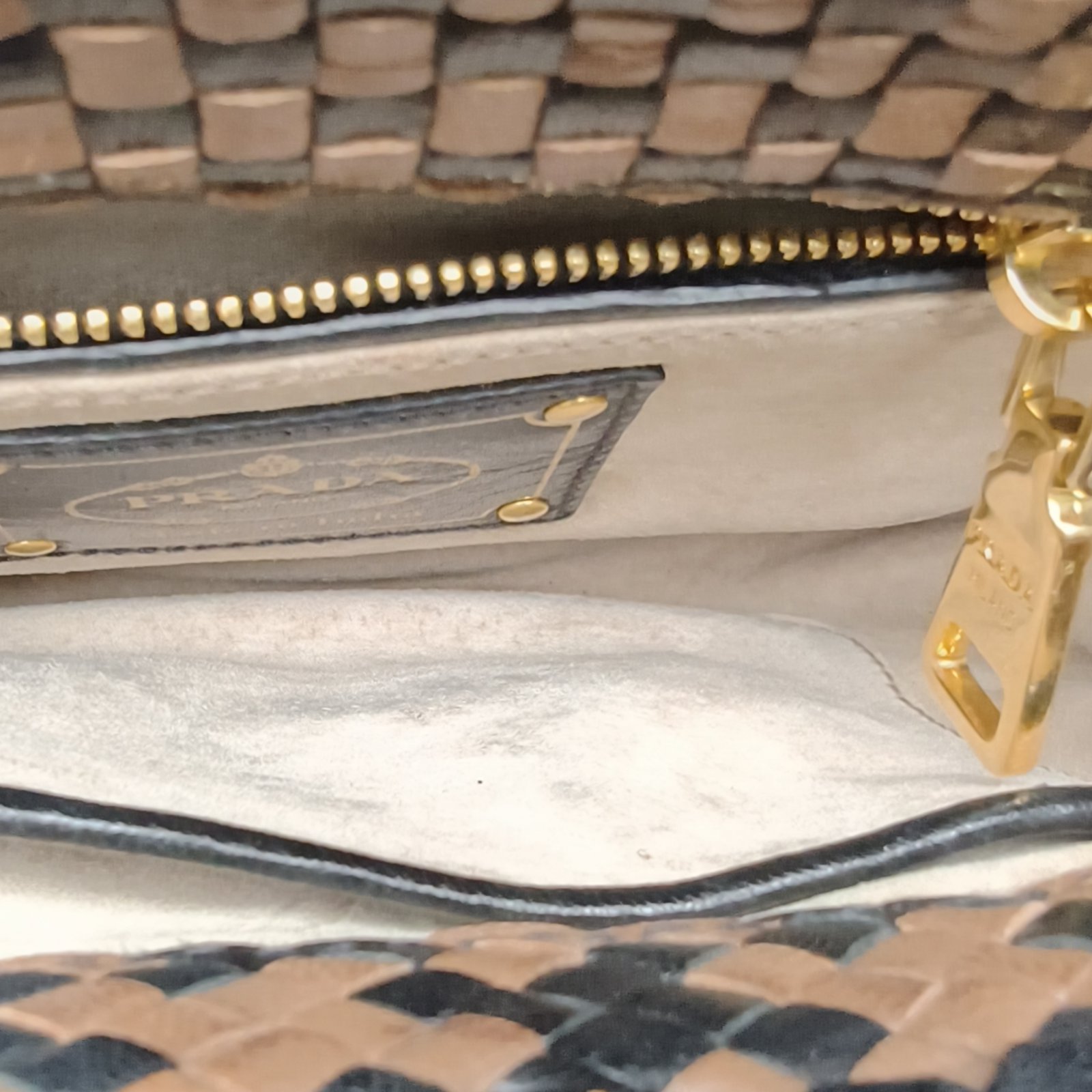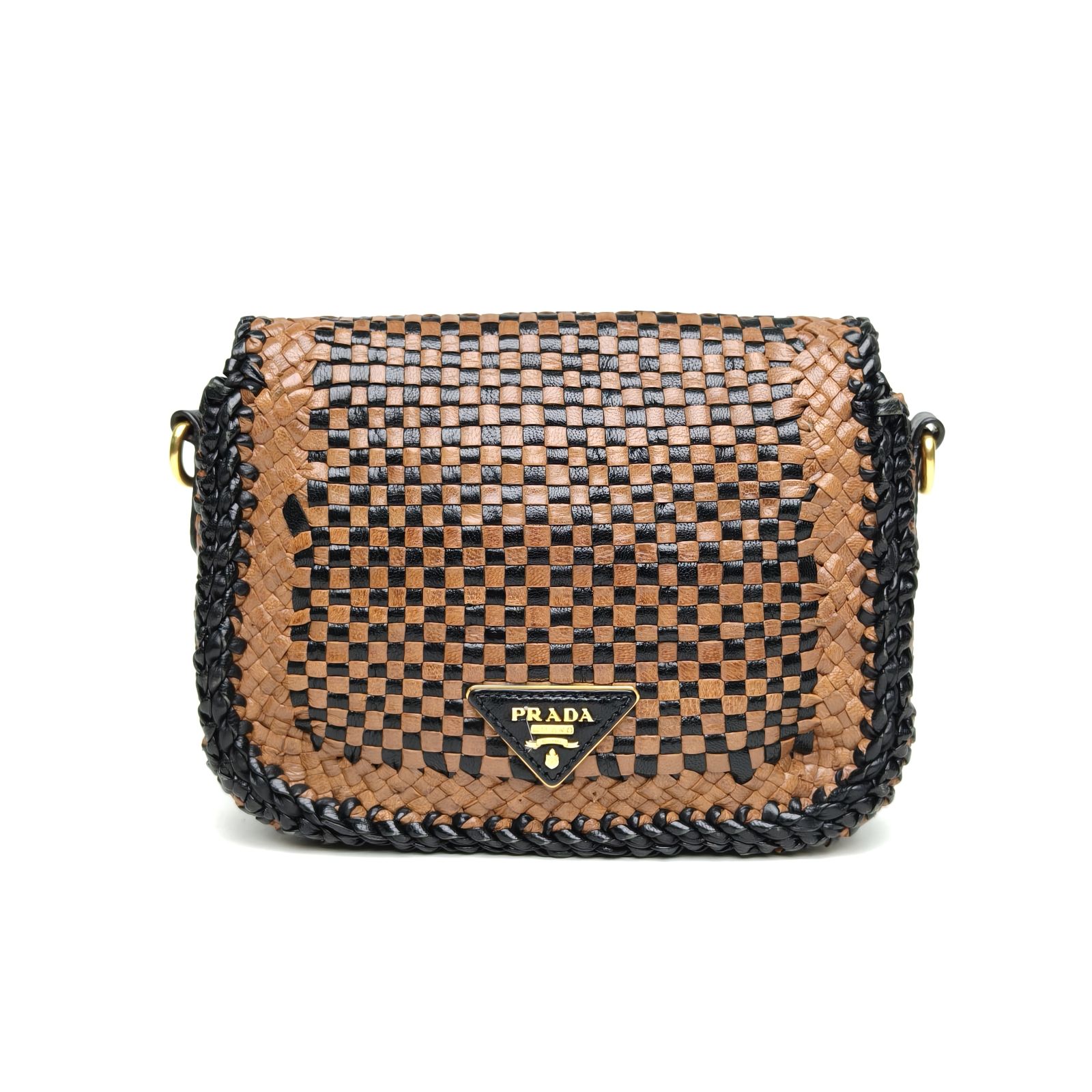 PRADA Color Block Woven Roulis Crossbody Bag