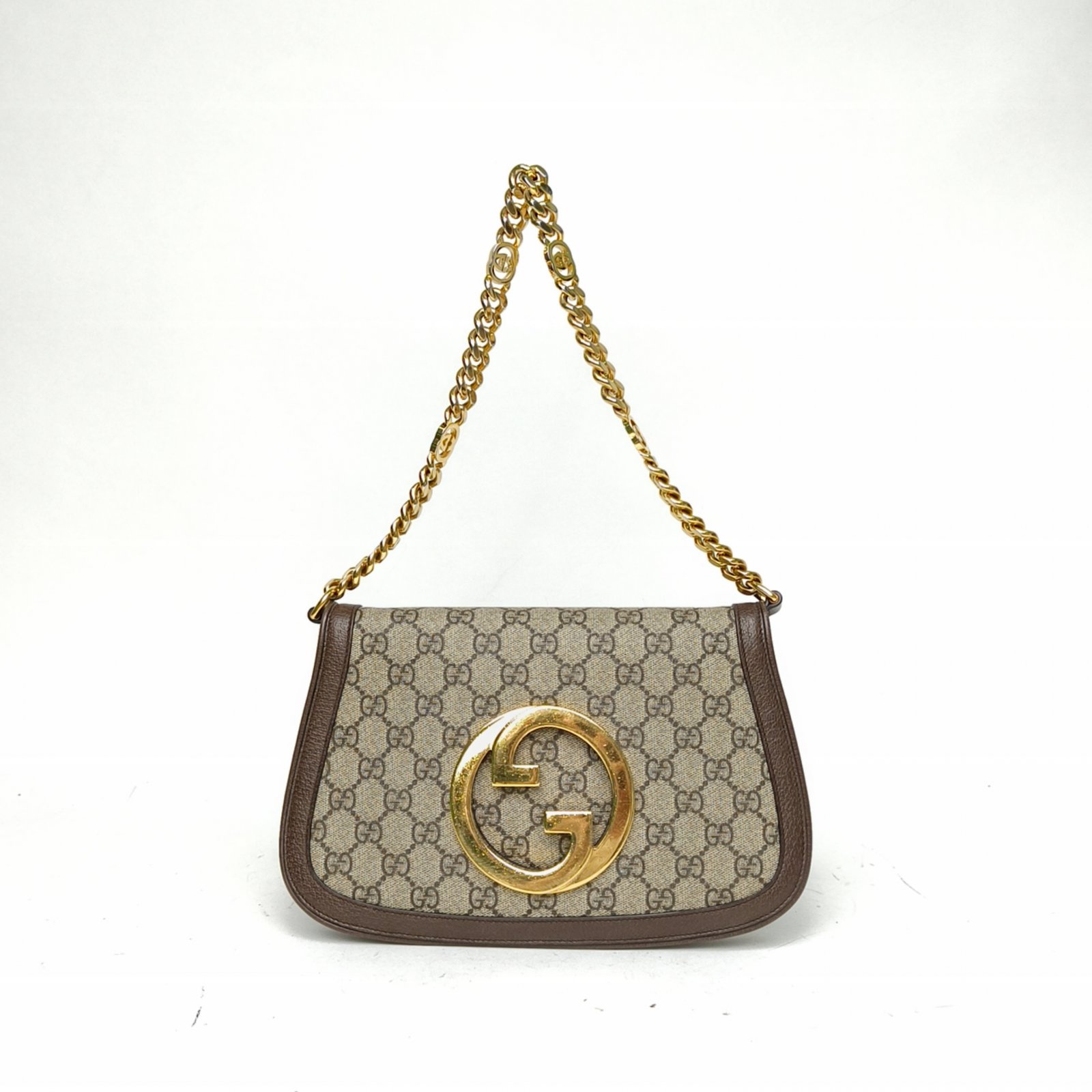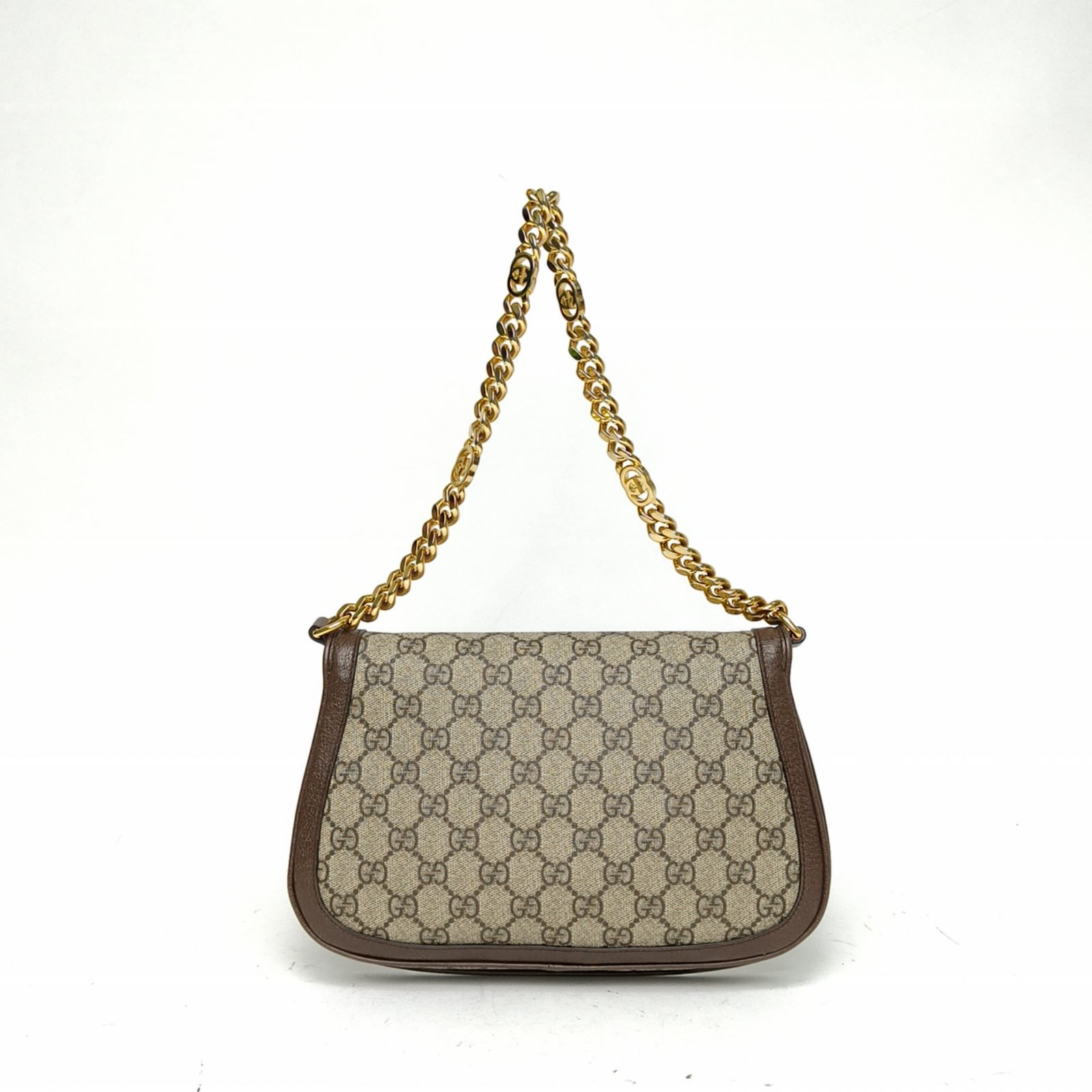 GUCCI Monogram PVC Gold Hardware Blondie Hollow-out GG Vintage Saddle Bag 28cm