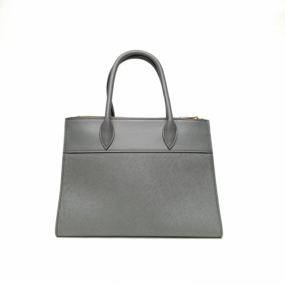 PRADA Dark Gray Gold Hardware Classic saffiano Cross Grain Tote Bag Handbag