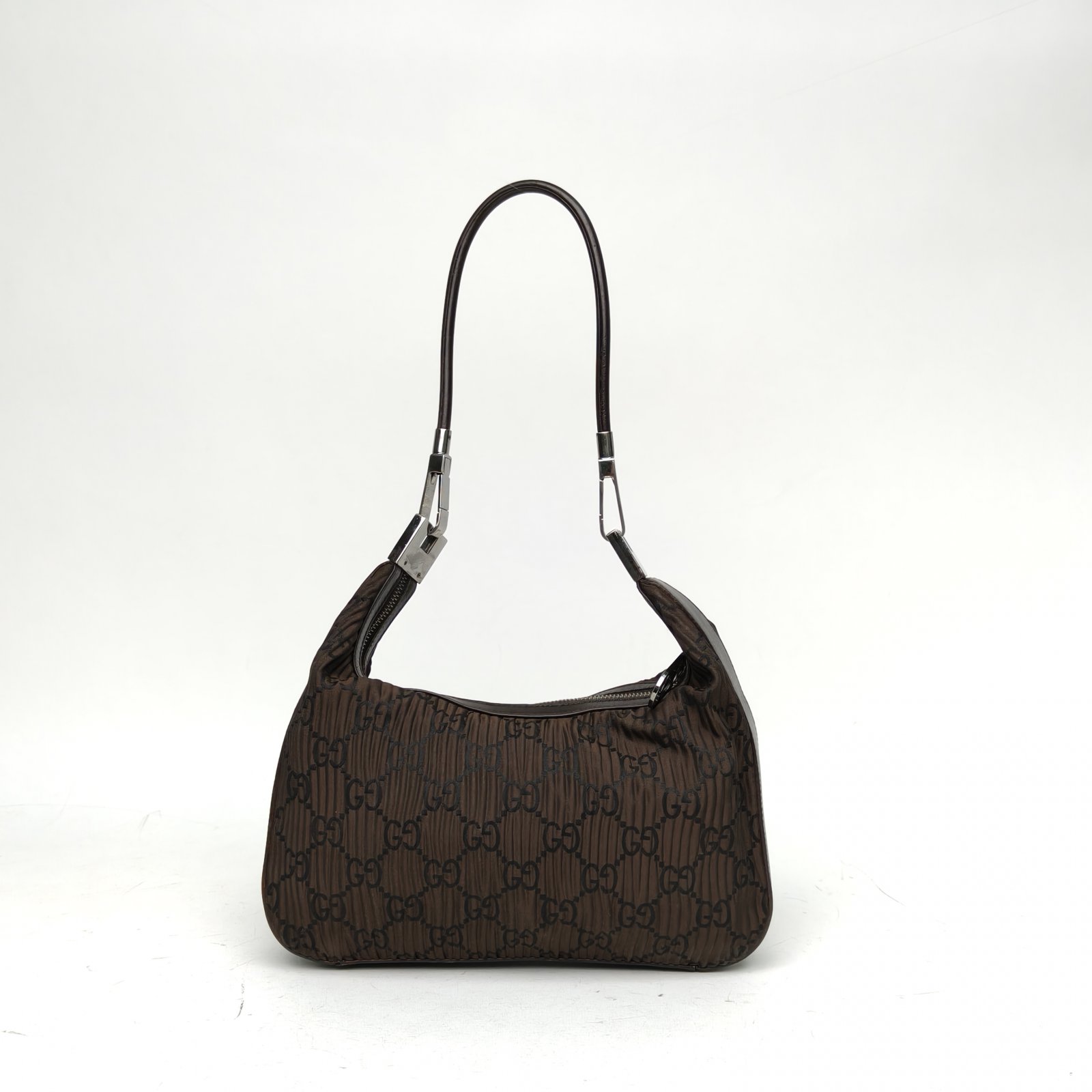 GUCCI Brown Nylon Vintage Pleated Shoulder Bag