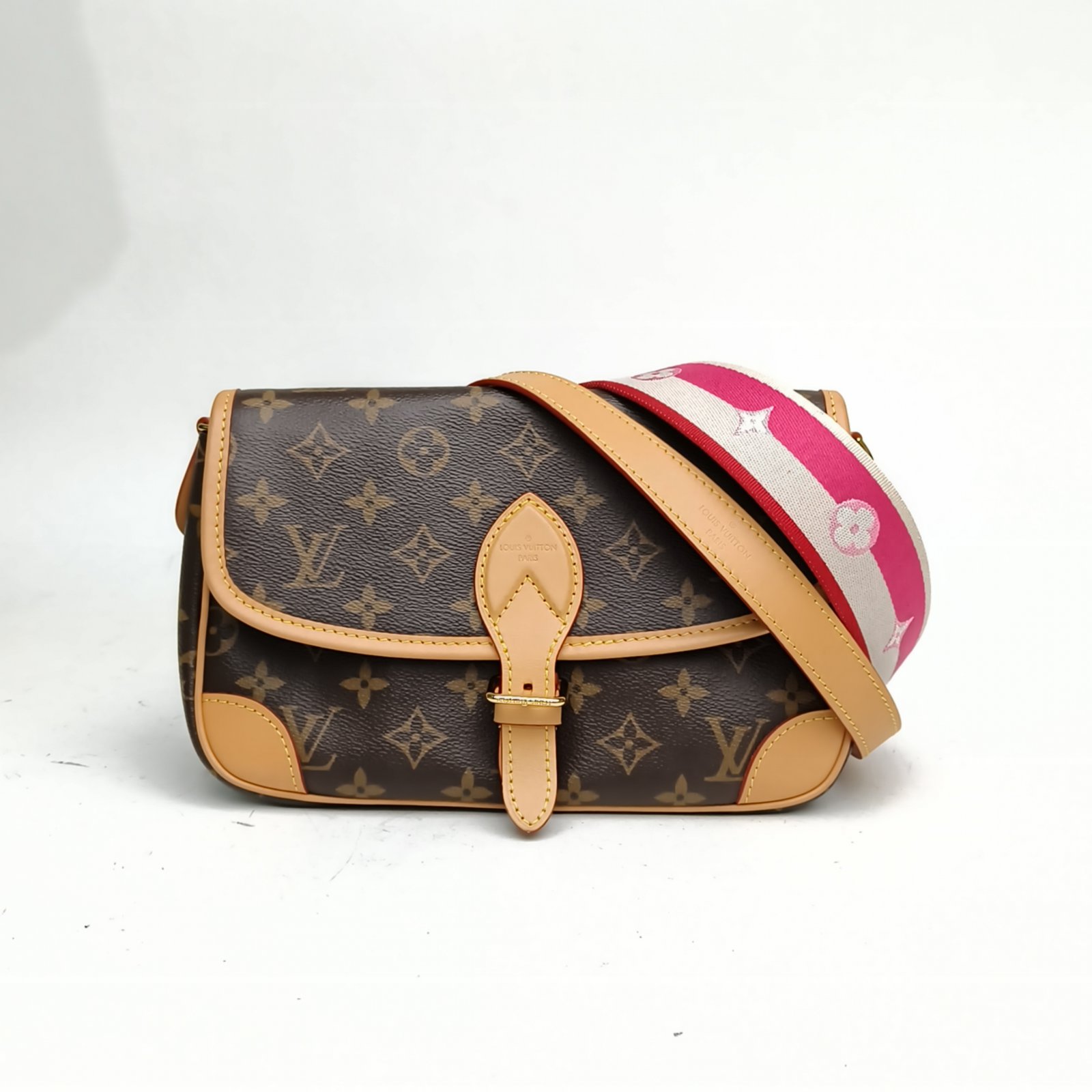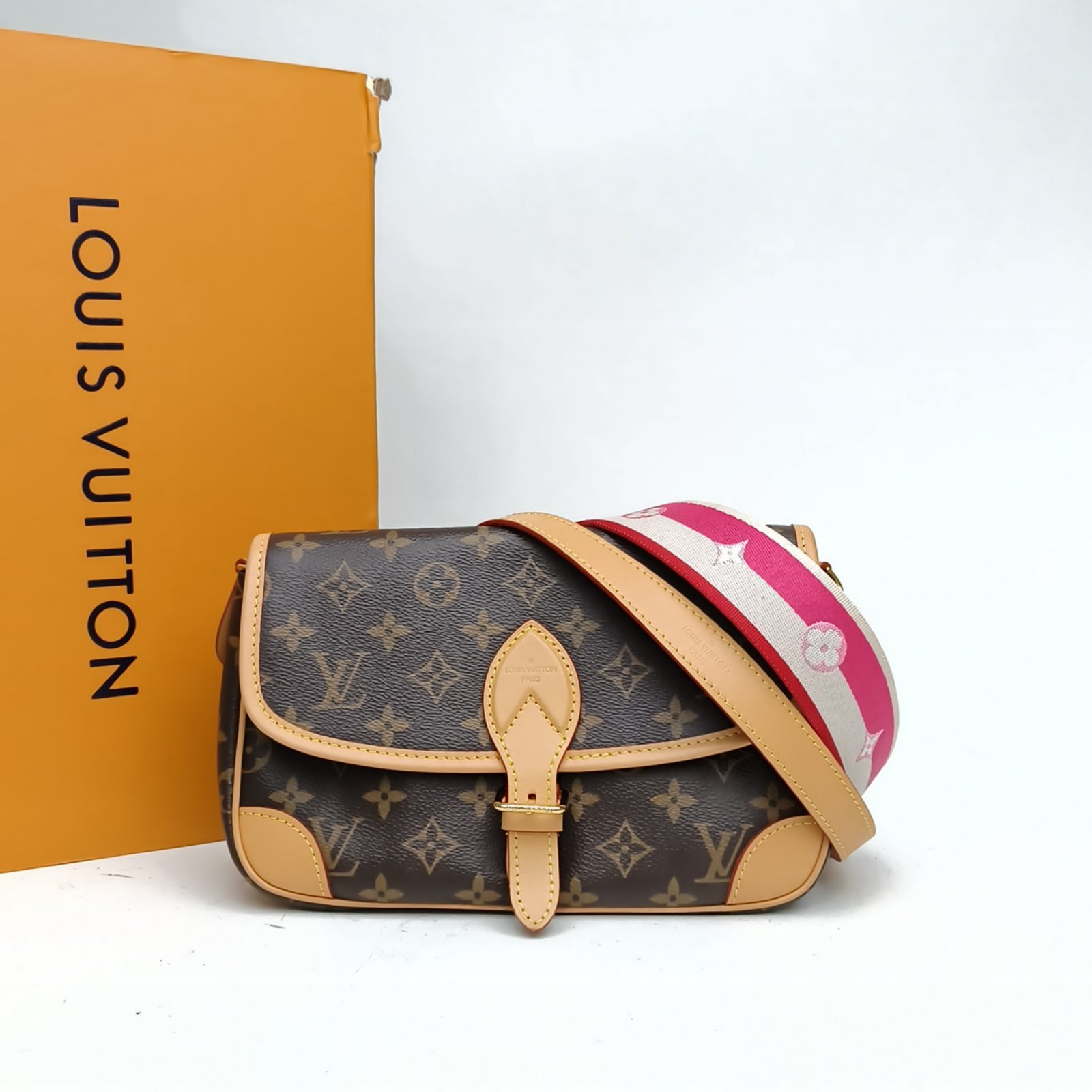 LOUIS VUITTON Diane Baguette bag 24 with Detachable Yellow and Purple Wide Shoulder Strap