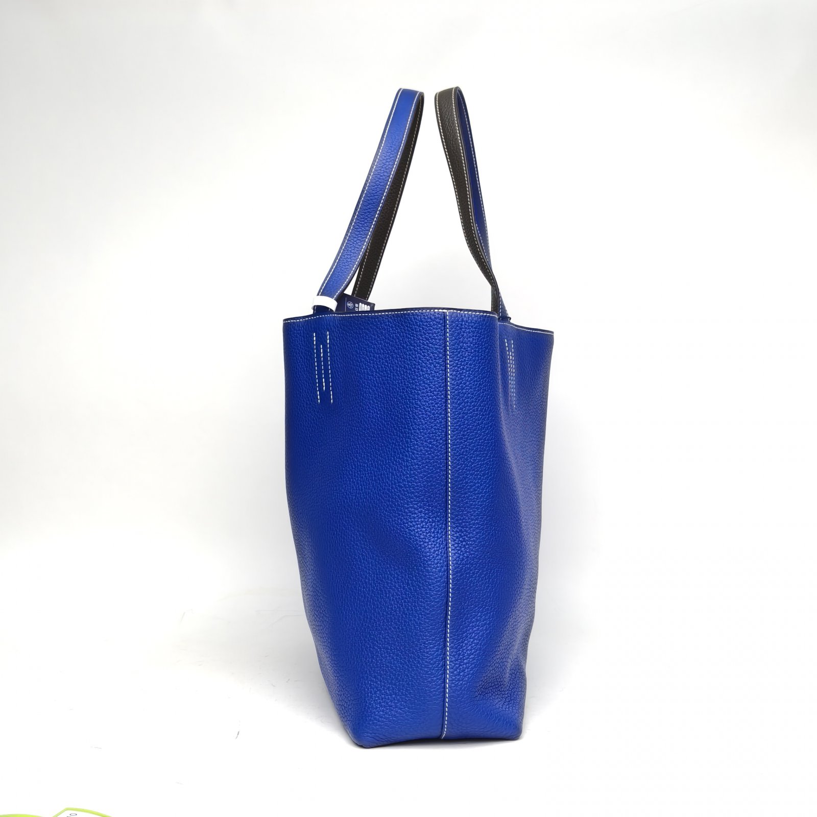 HERMES 88 Graphite Grey 7T Electric Blue TC Leather Frame Q Herm��s double Graphite Grey Electric Blue