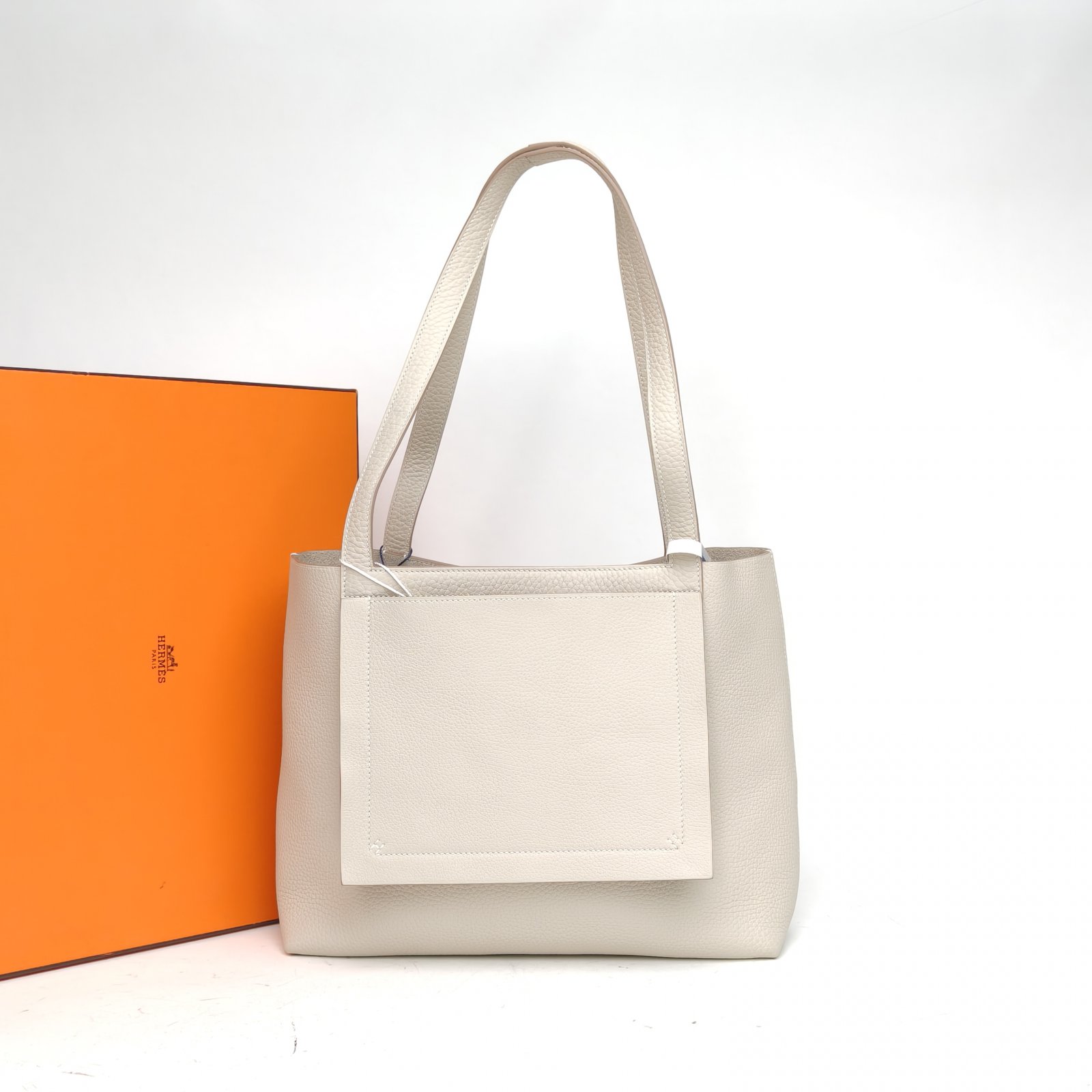 HERMES 10 Milkshake White TC Leather U Engraved cabasellire Tote Bag