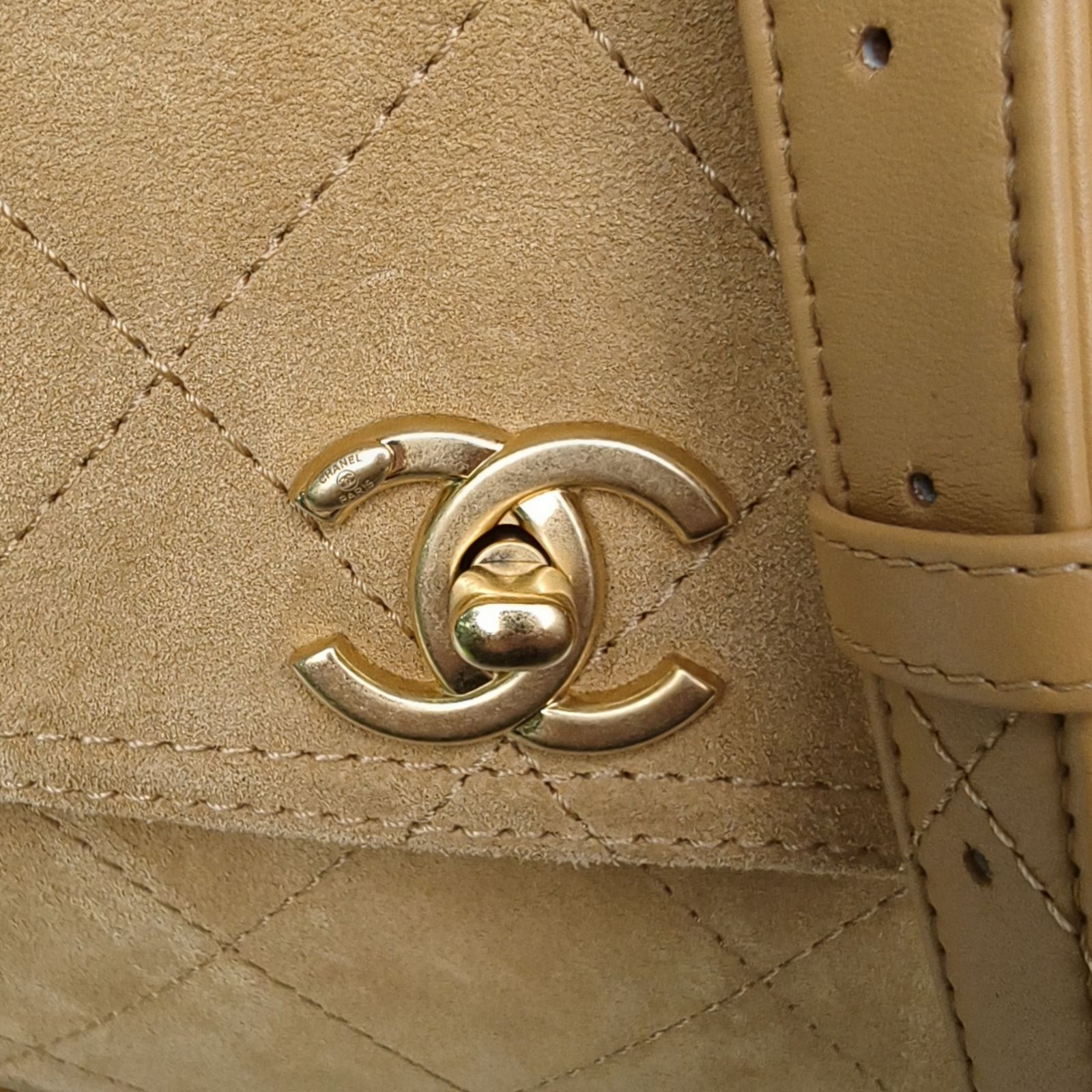 CHANEL 26C Suede hobo Pochette Metis Beige Chip Gold Hardware