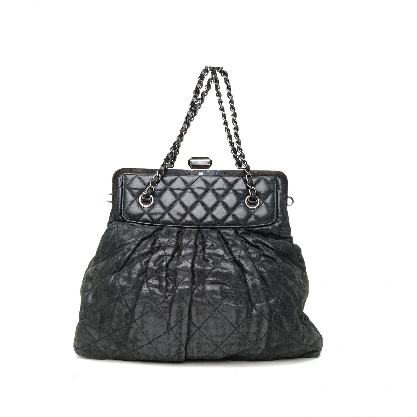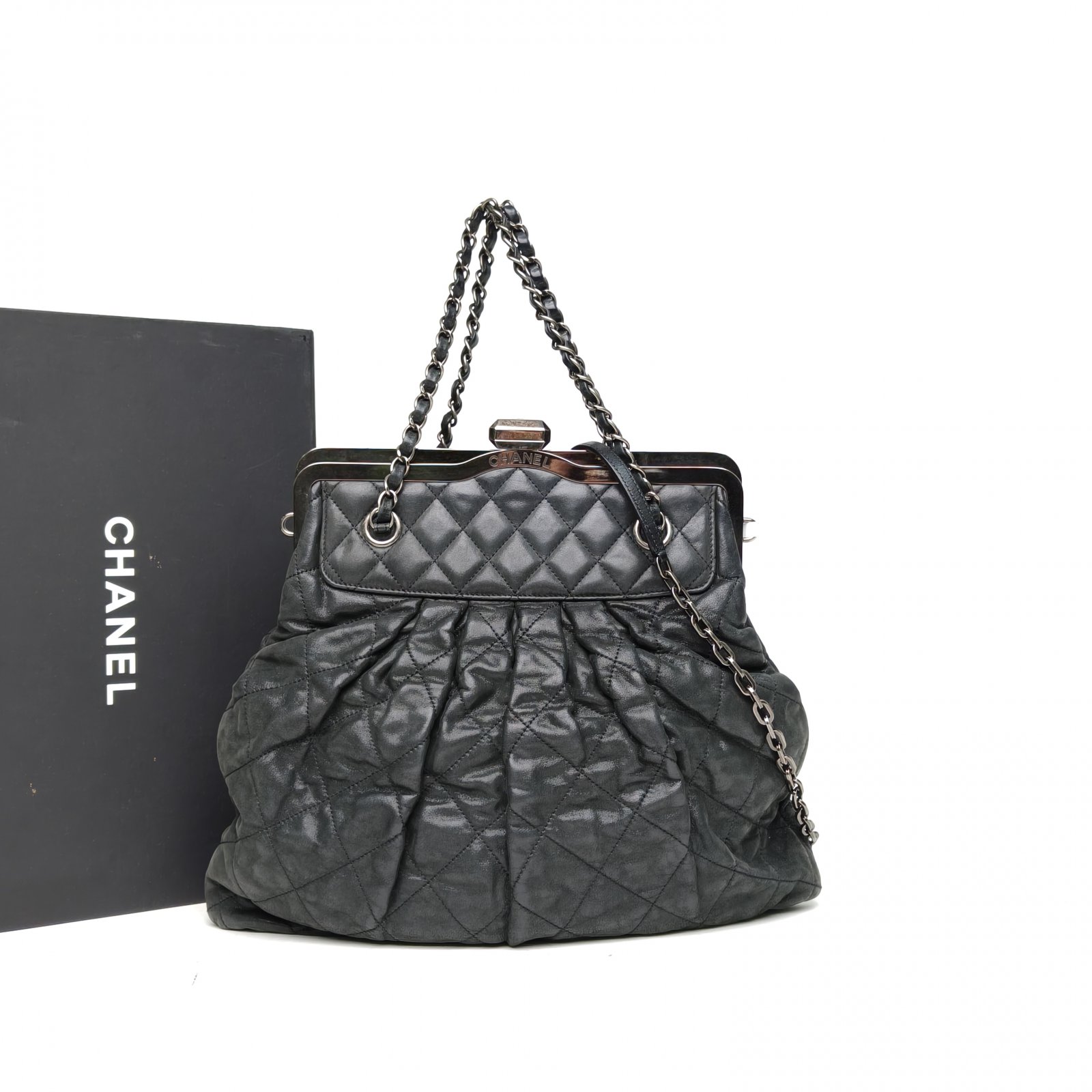 CHANEL Dark Gray Tech Fabric 2011 Sliver Hardware Chain Bag