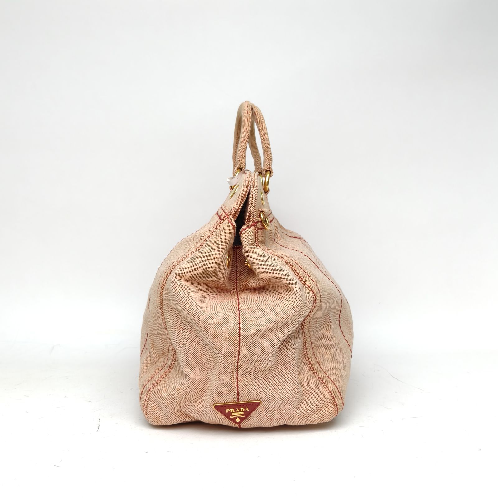 PRADA Red Canvas Denim Tote Bag