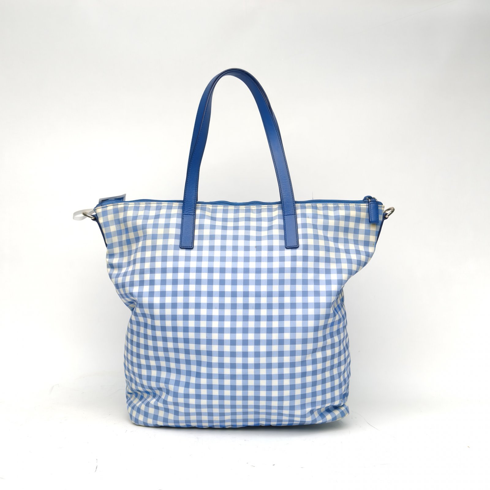 PRADA Blue Nylon Sliver Hardware Plaid Hand Shoulder Bag