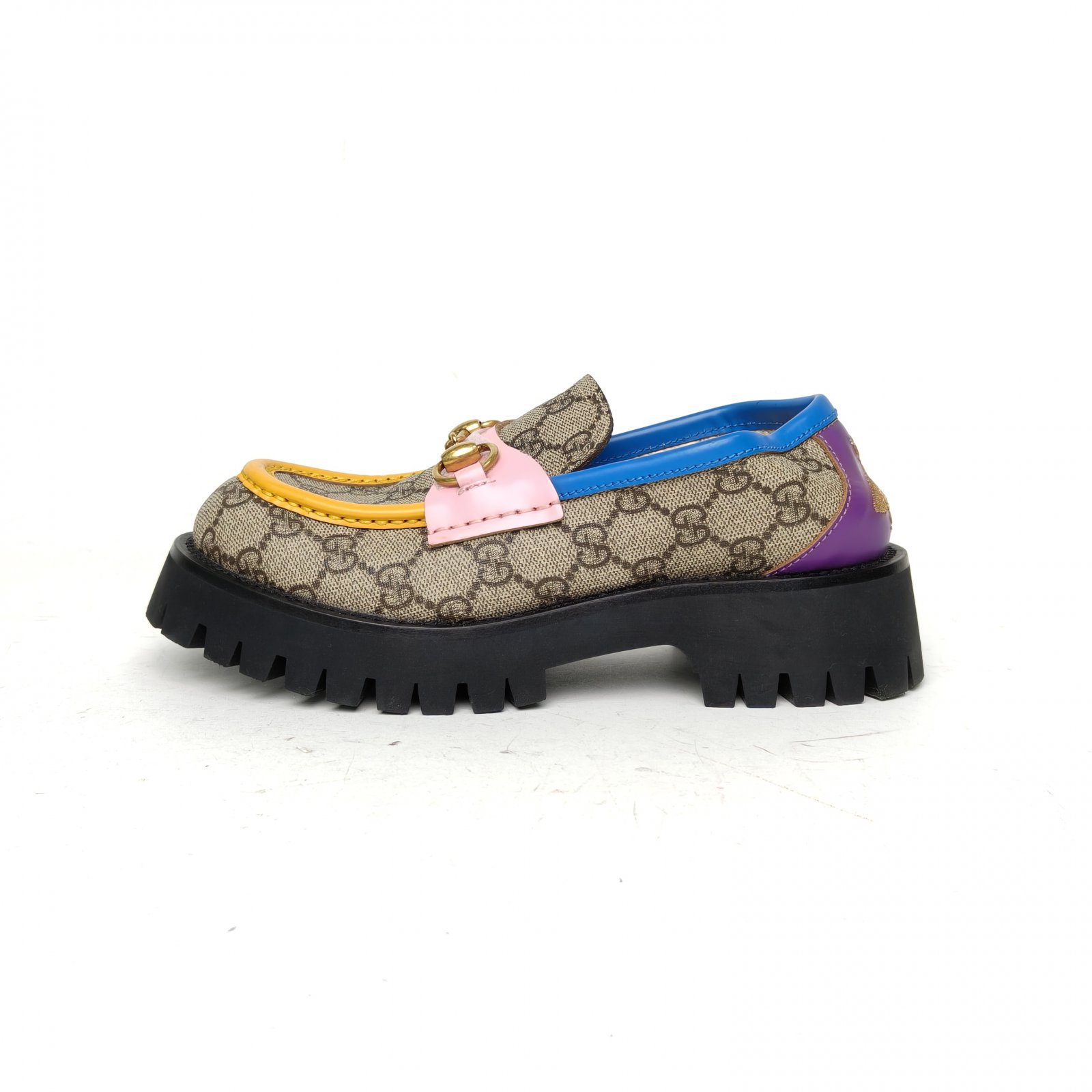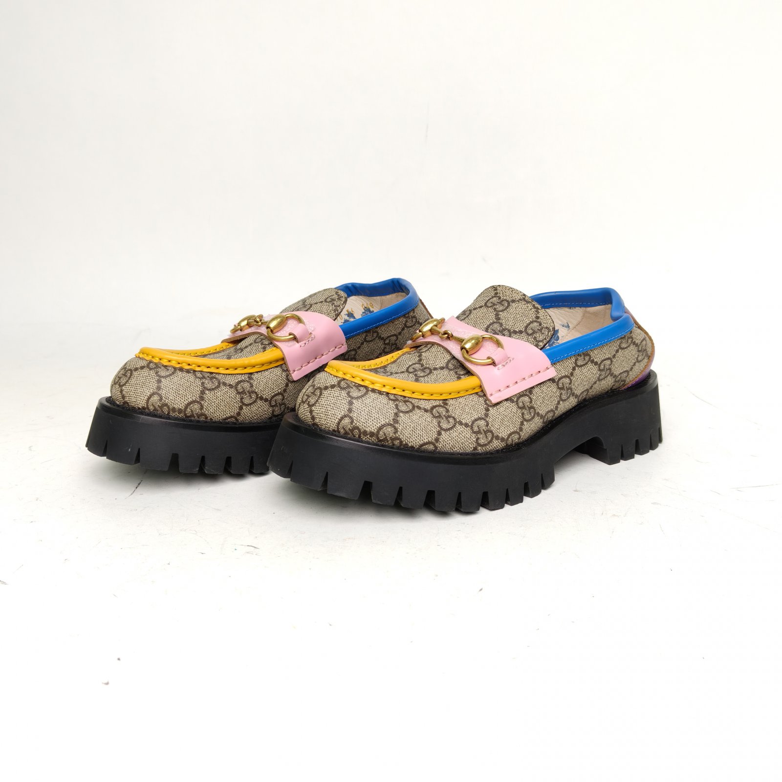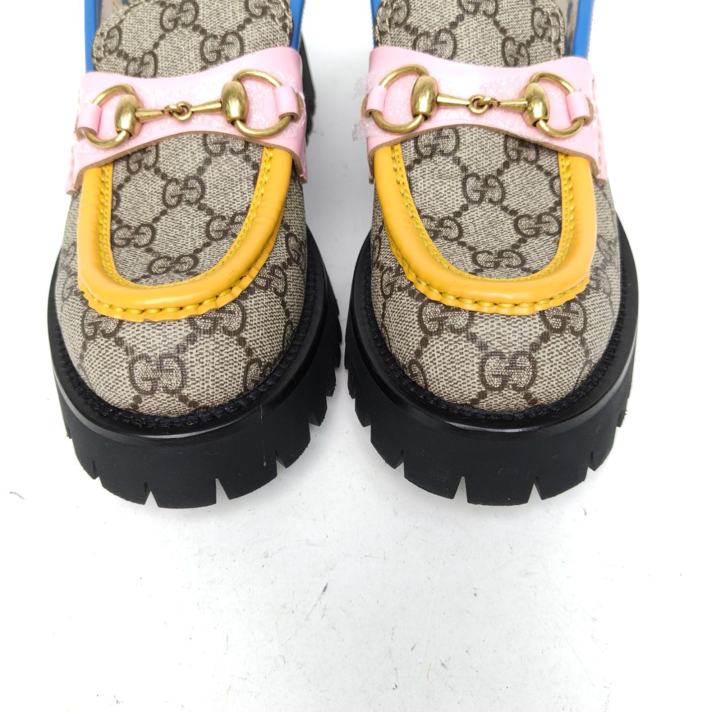 GUCCI Monogram GG all-over print platform Horsebit Loafers 36