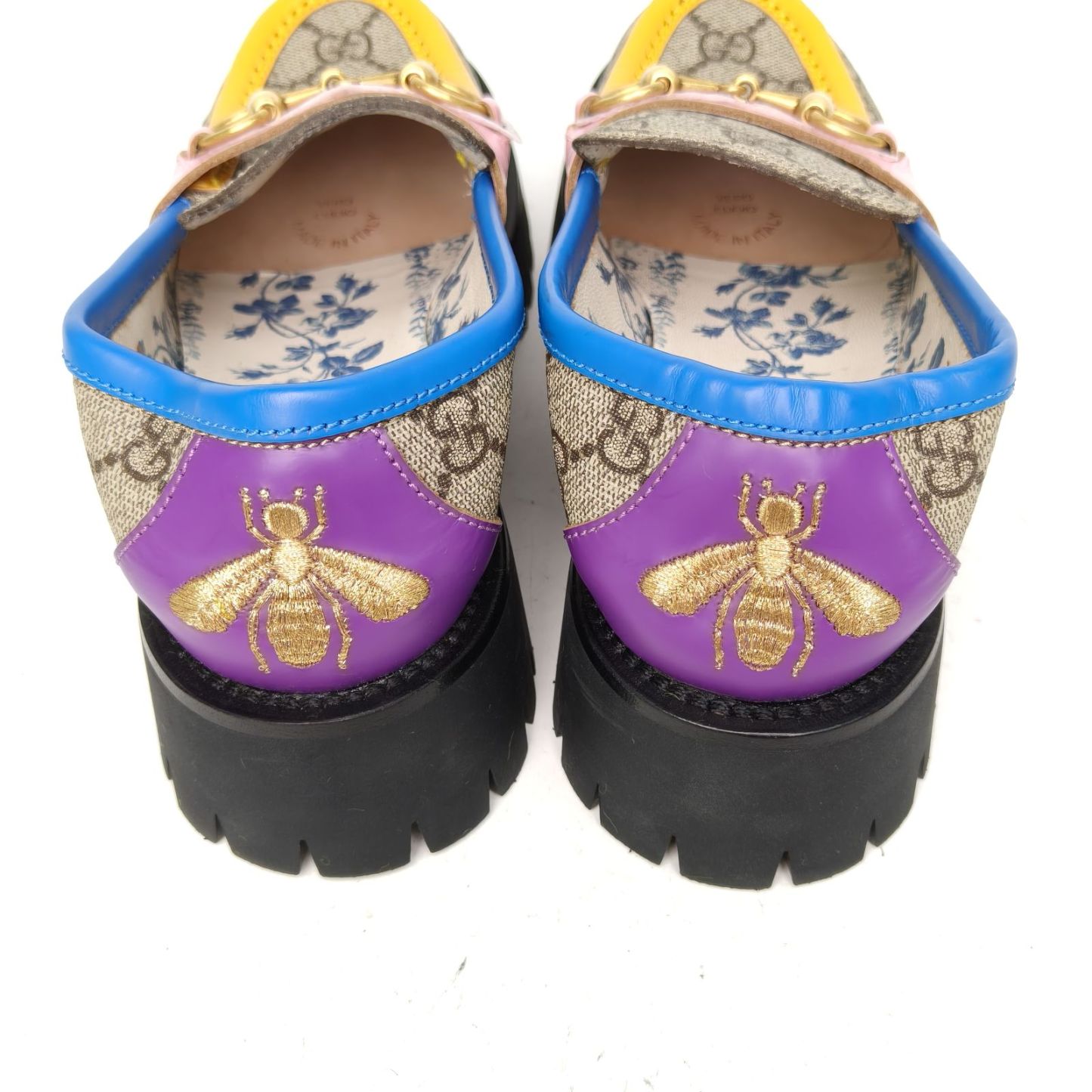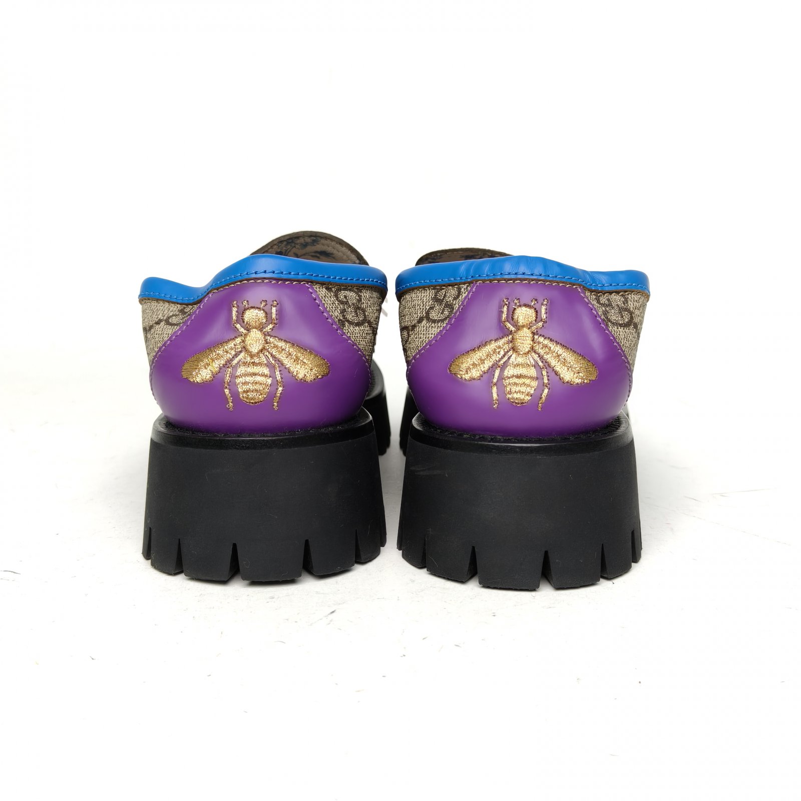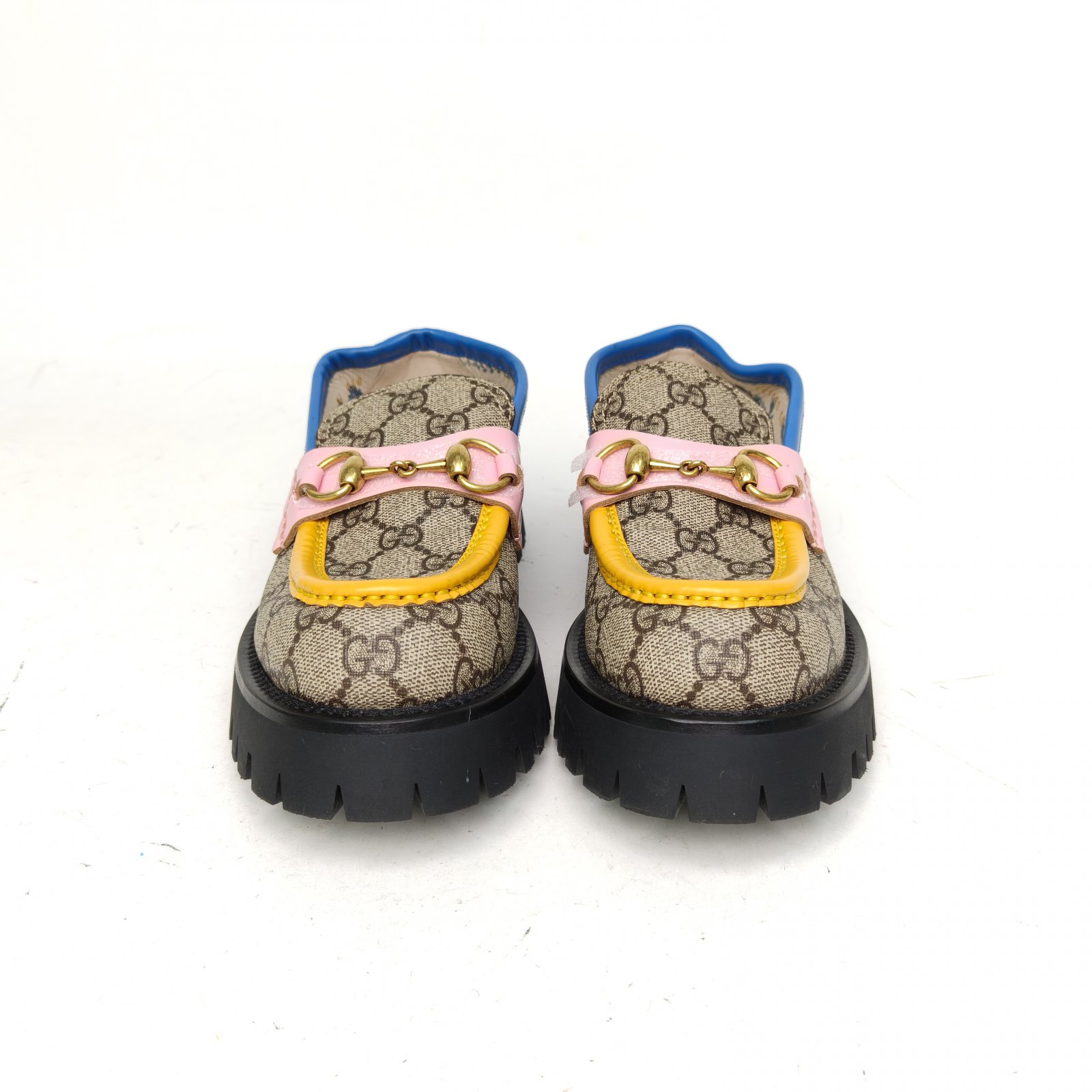 GUCCI Monogram GG all-over print platform Horsebit Loafers 36