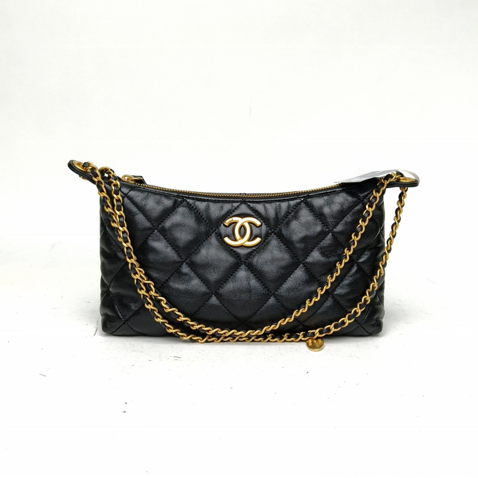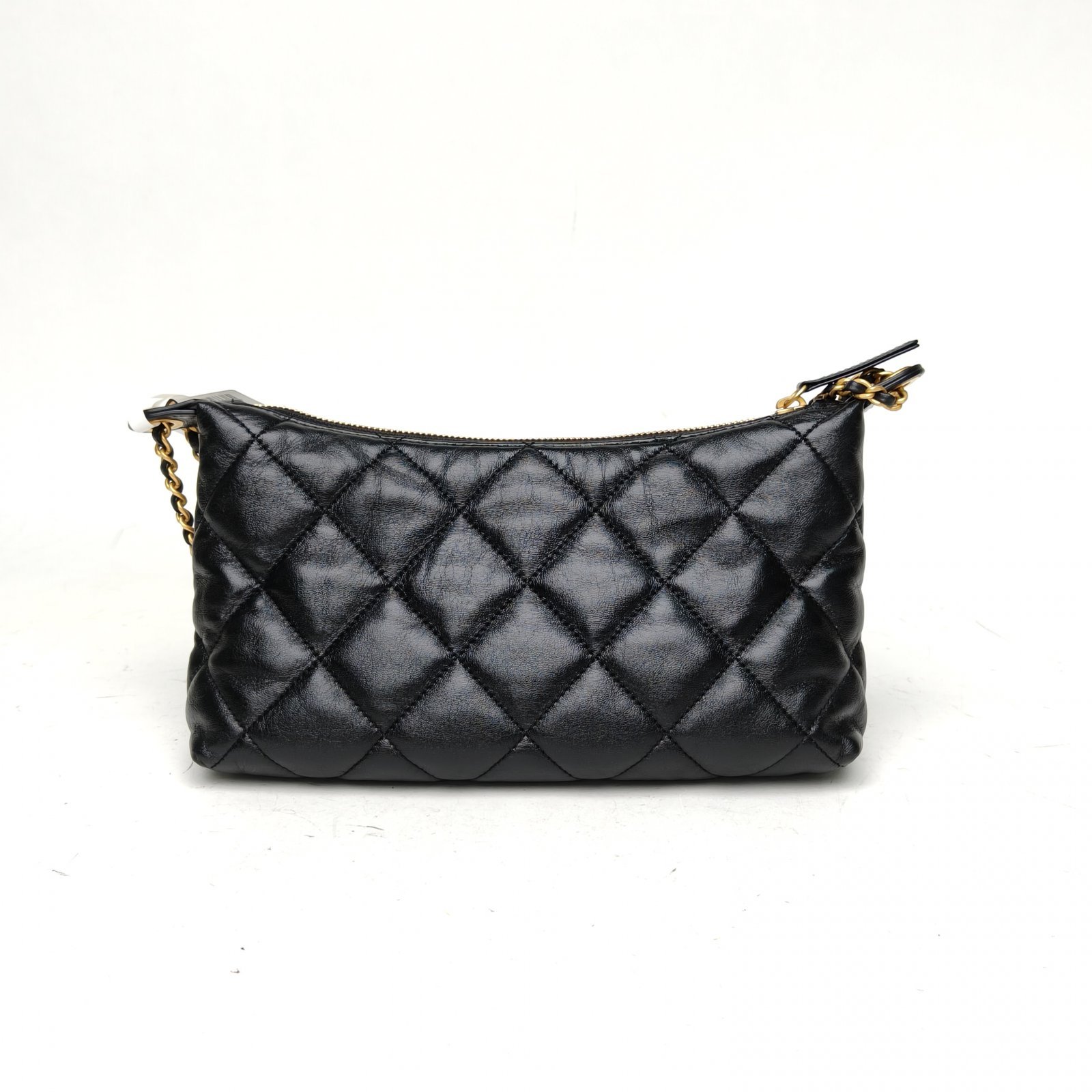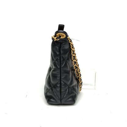 CHANEL Black Chip Gold Hardware Quilted 25S hobo Shoulder Bag 26cm