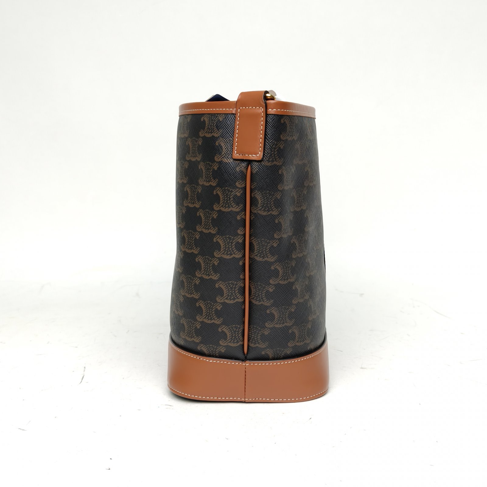CELINE Triomphe Logo Printed Canvas Bucket Bag, Small 18