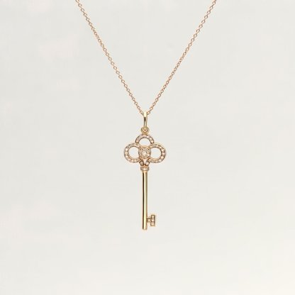 TIFFANY&CO Tiffany Keys Crown Key Necklace Medium 3.8cm Half Diamond 18K Rose Gold,Diamond
