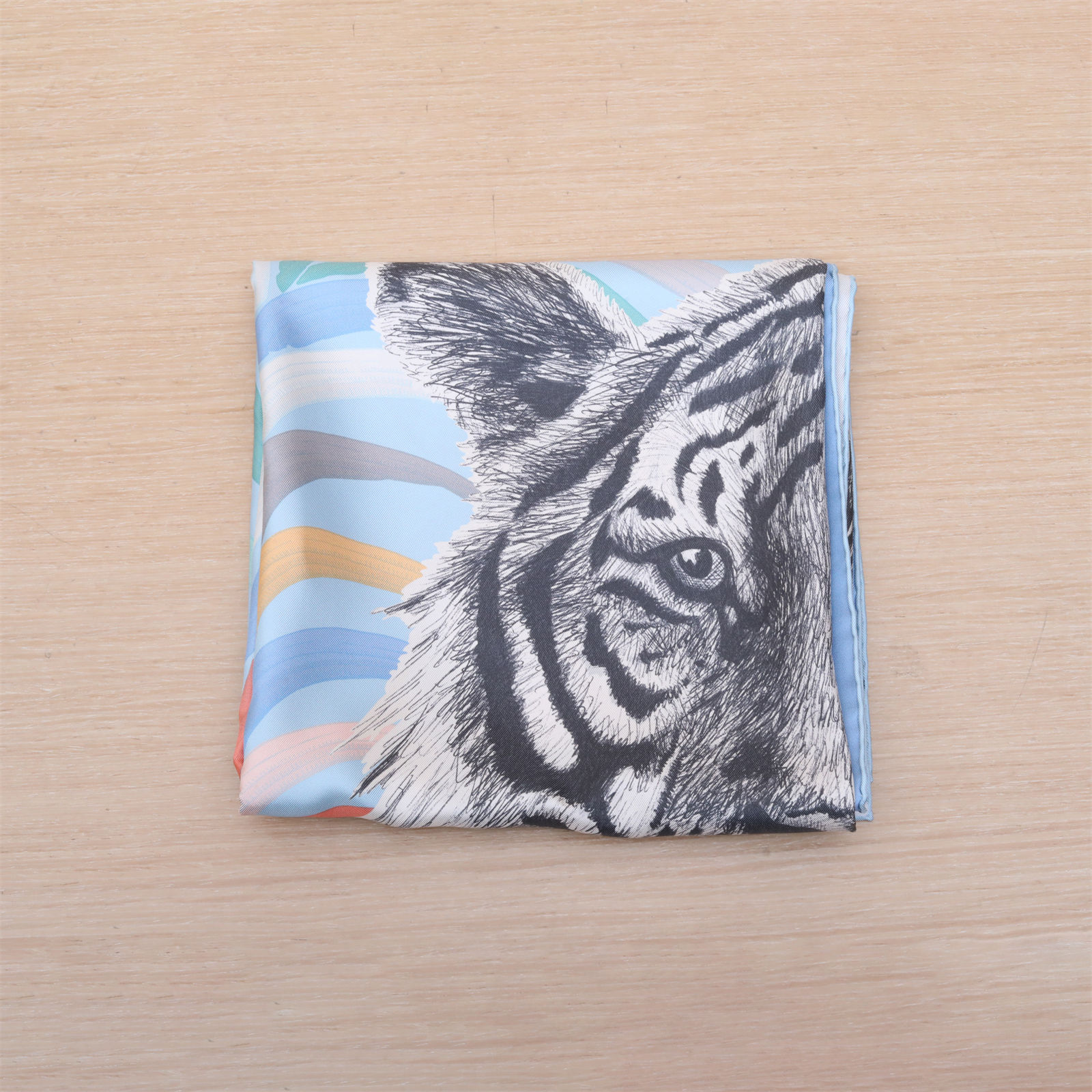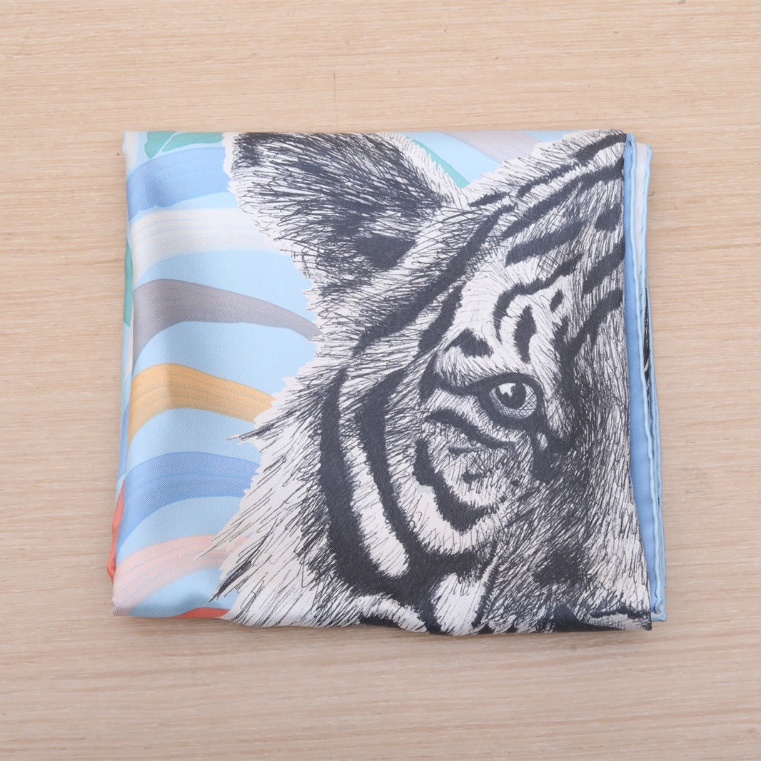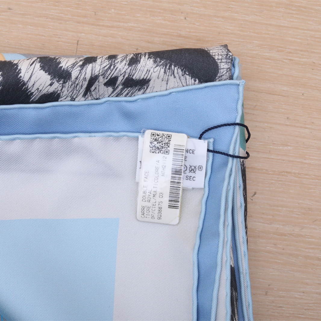 HERMES Tiger king 90*90 double-sided square scarf blue printed