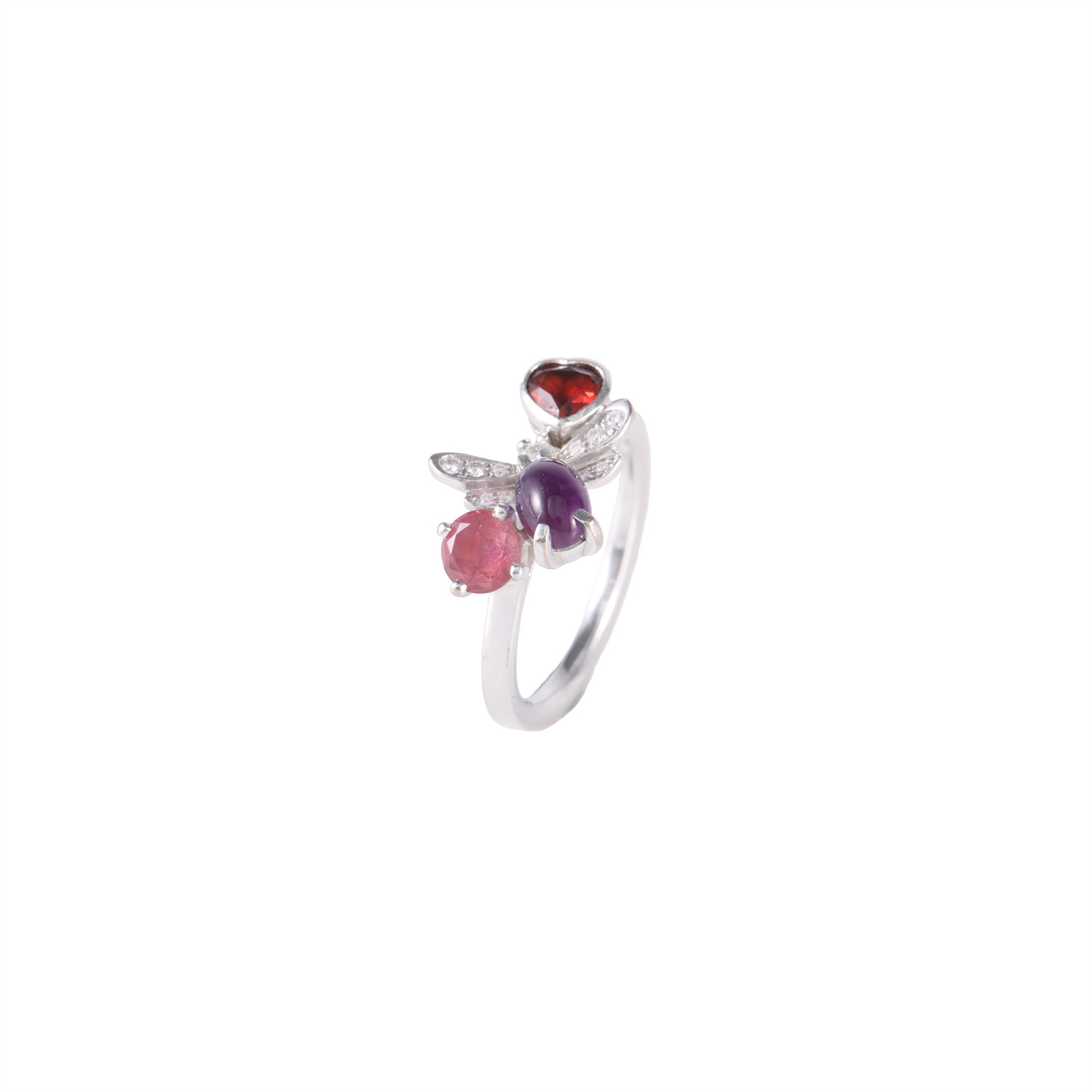 CHAUMET Platinum Garden Collection Diamond-set Bee Colored Gemstone Ring 18K 18K White Gold,Diamond
