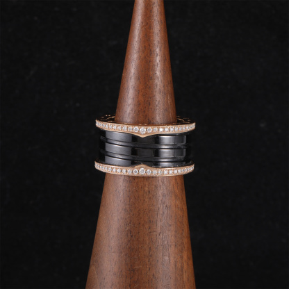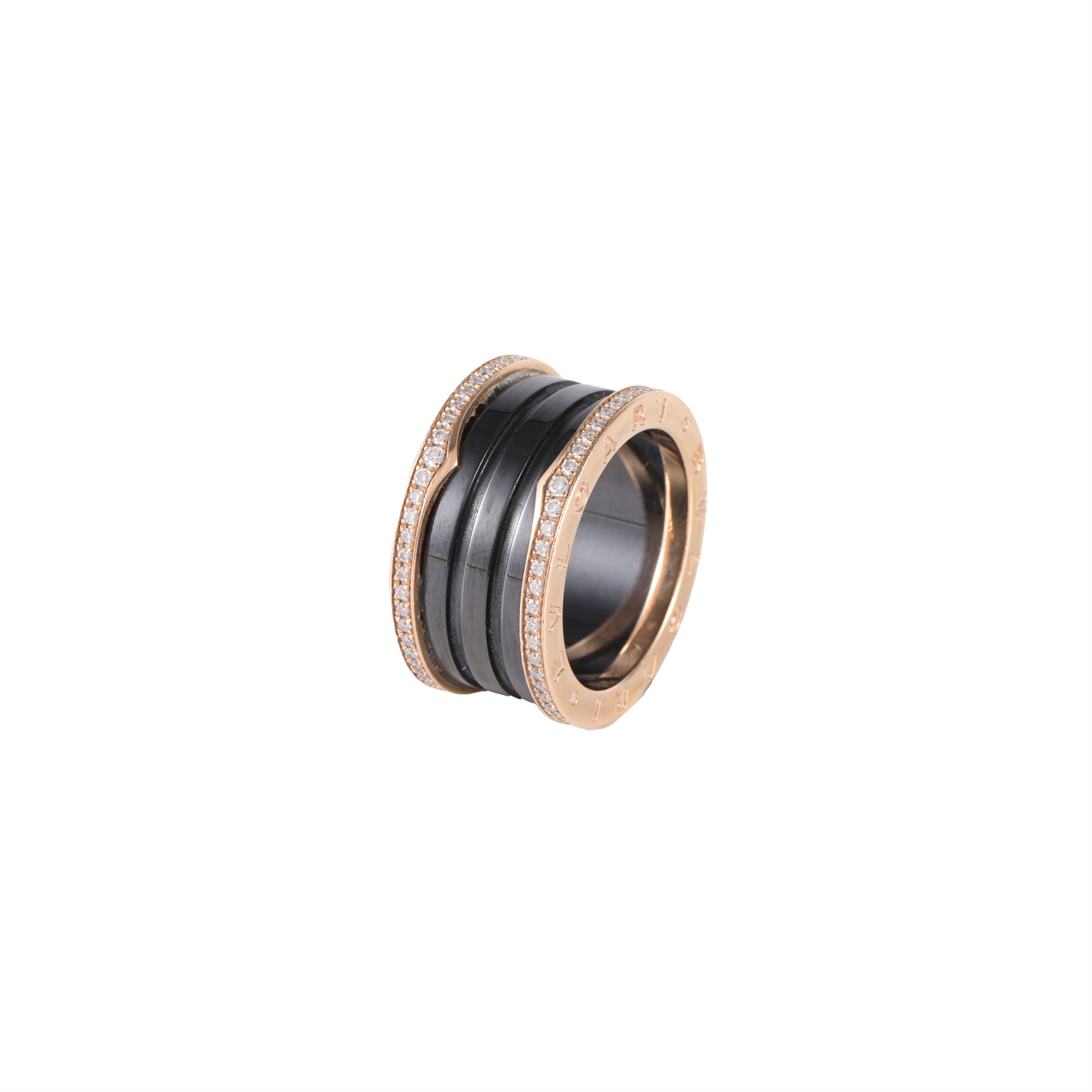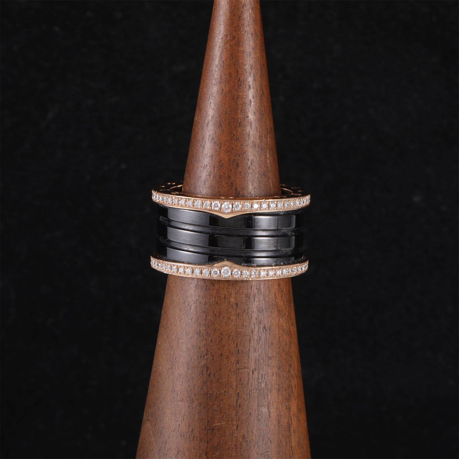 BVLGARI B.ZERO1 Coil Ring Four Rows Double Sided Diamonds Diamond,18K Rose Gold,Black Ceramic