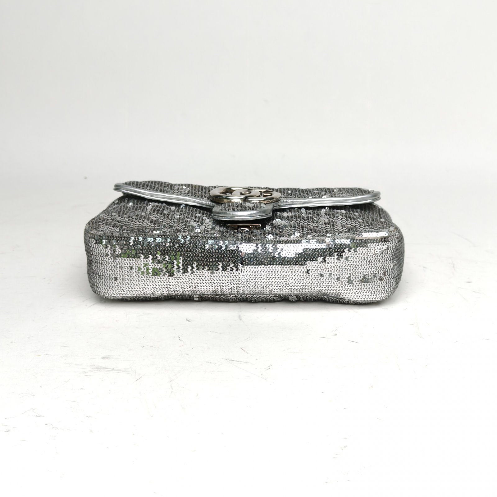 GUCCI Silver Sequin Sliver Hardware GG Marmont Shoulder Bag Mini 22 Twill Sequin