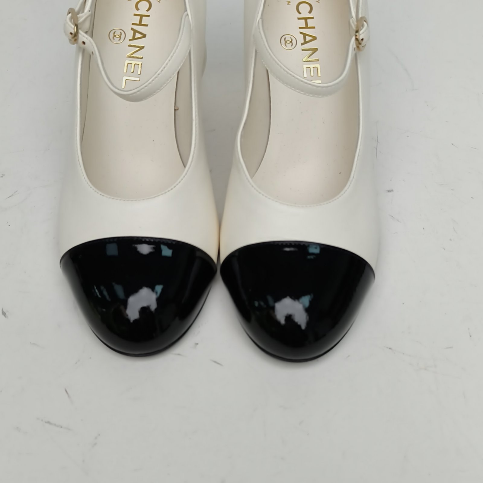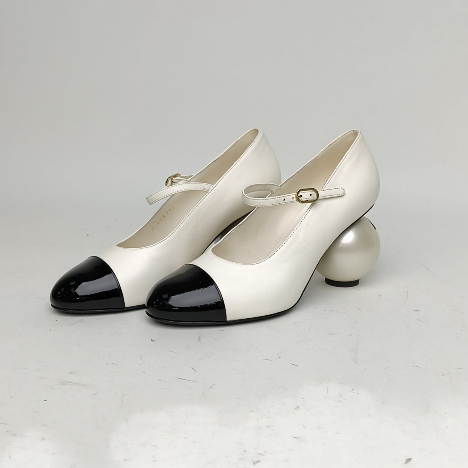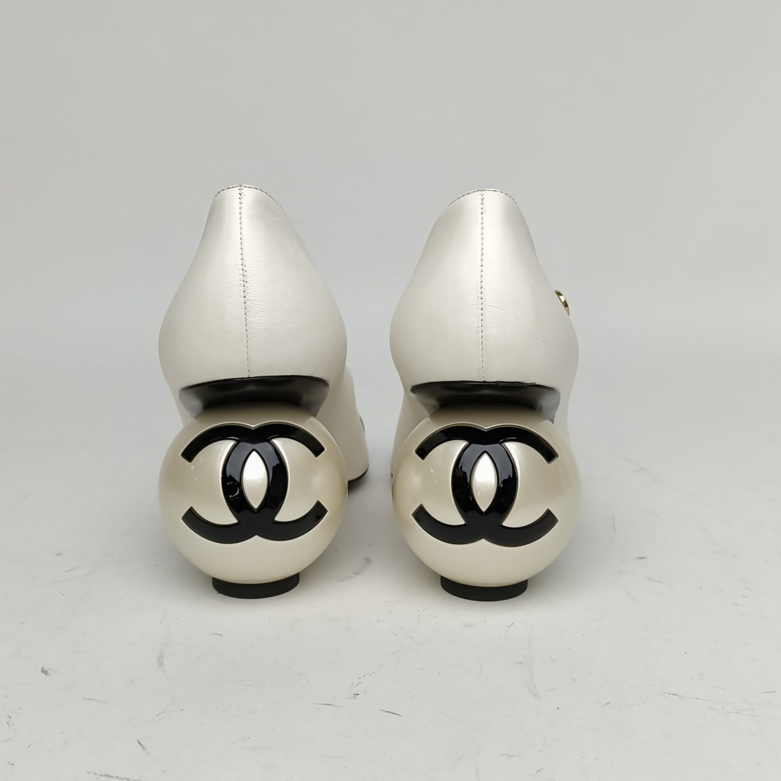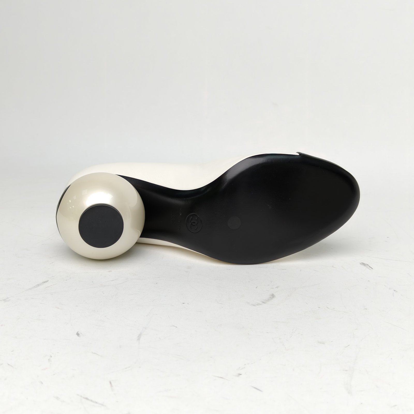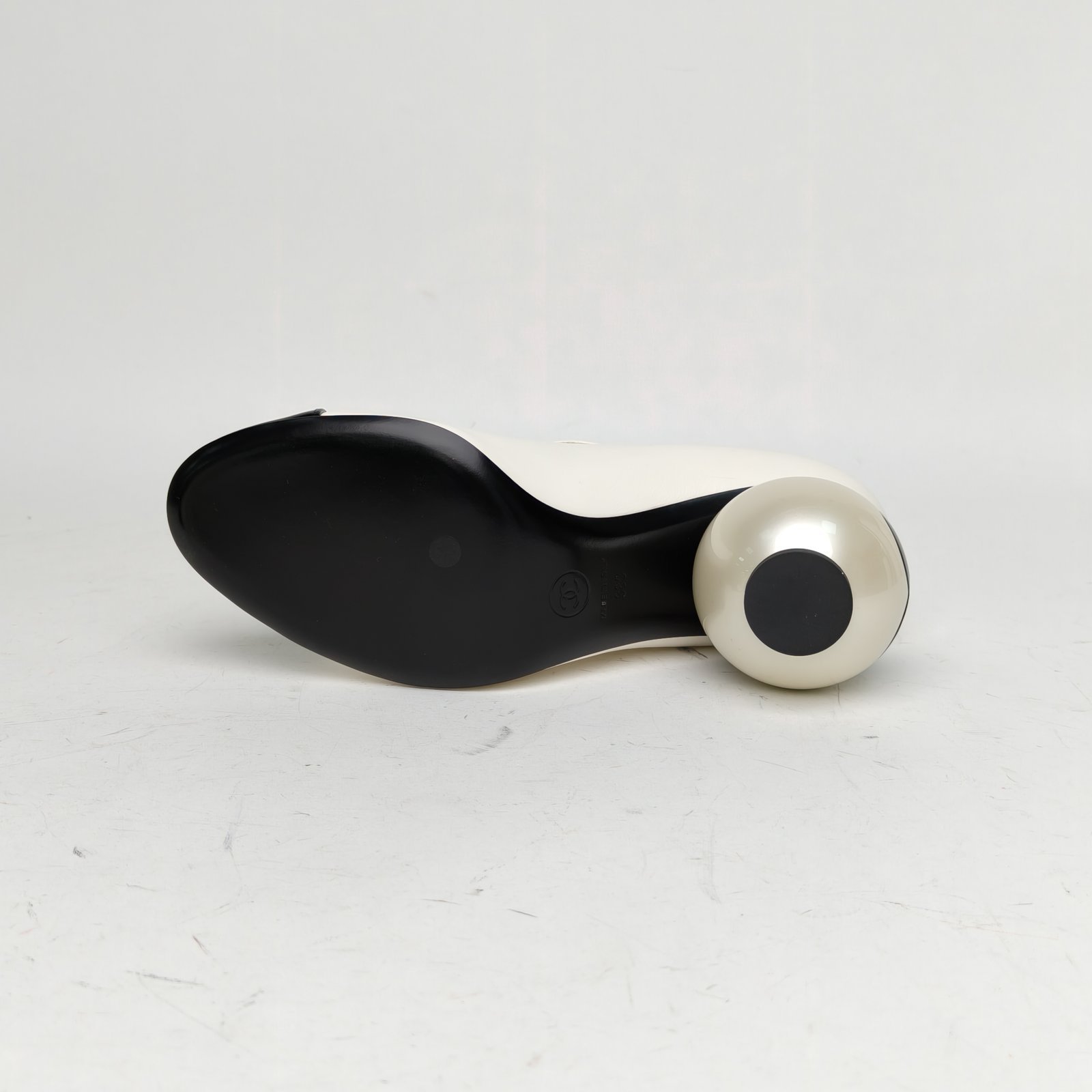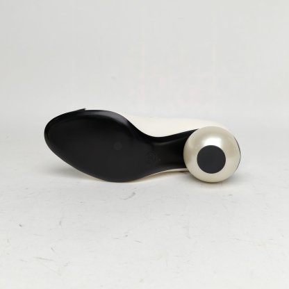CHANEL Black and White 25K Double C Large Pearl Mary Jane High Heels 38