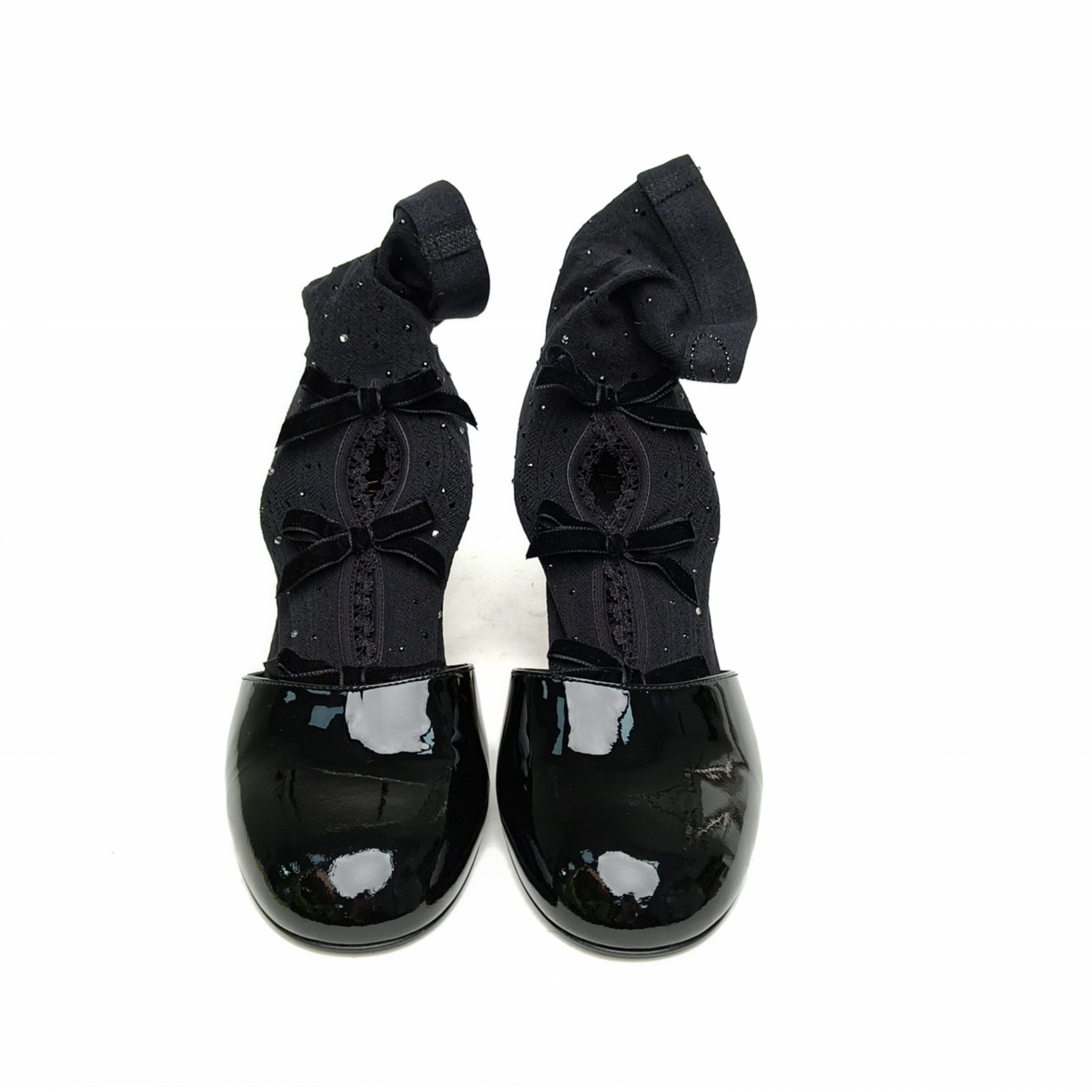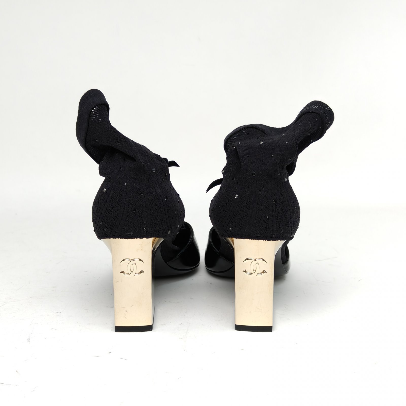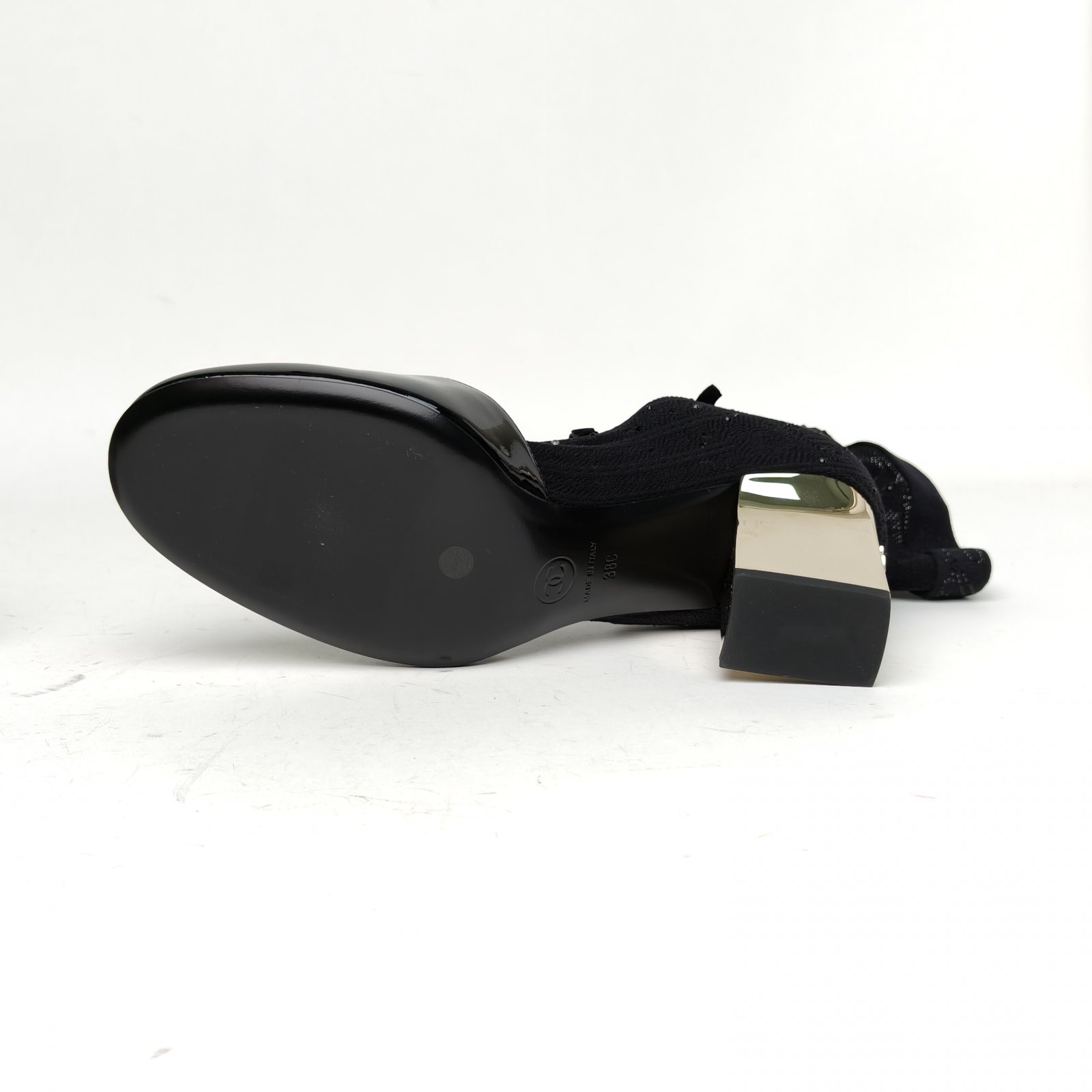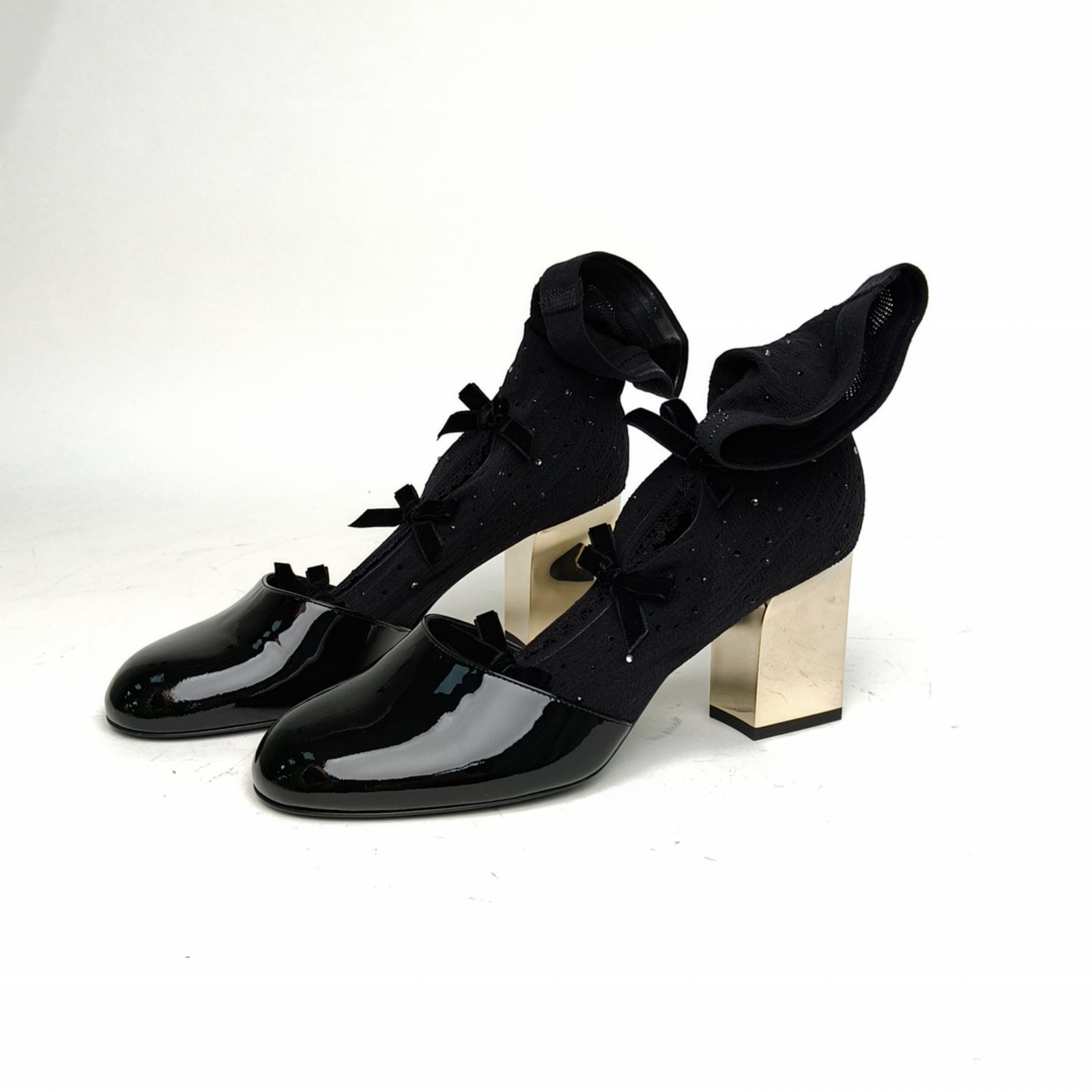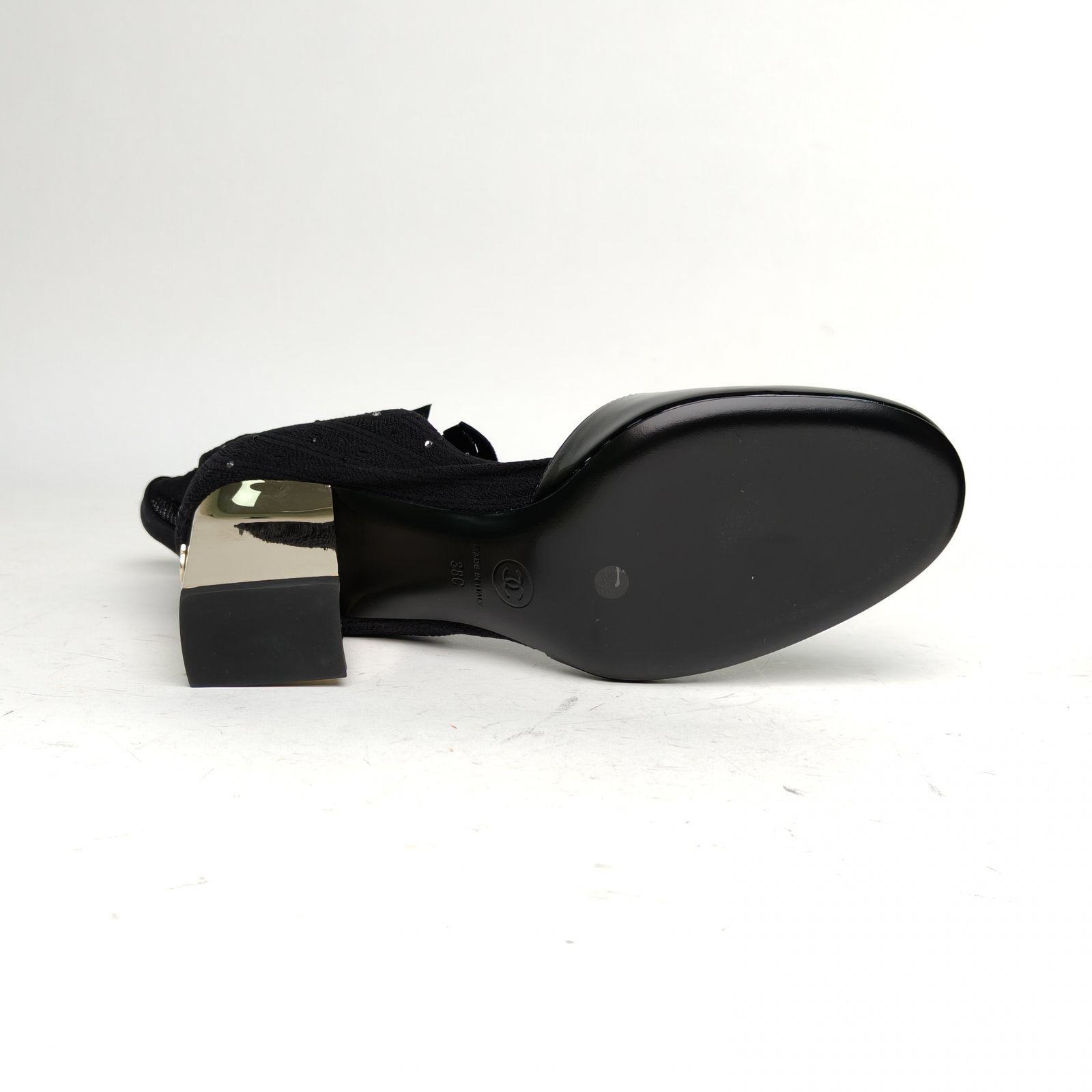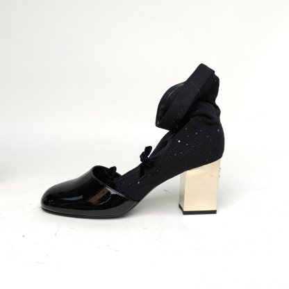 CHANEL Black 25K Bowknot Pantyhose High Heels 38
