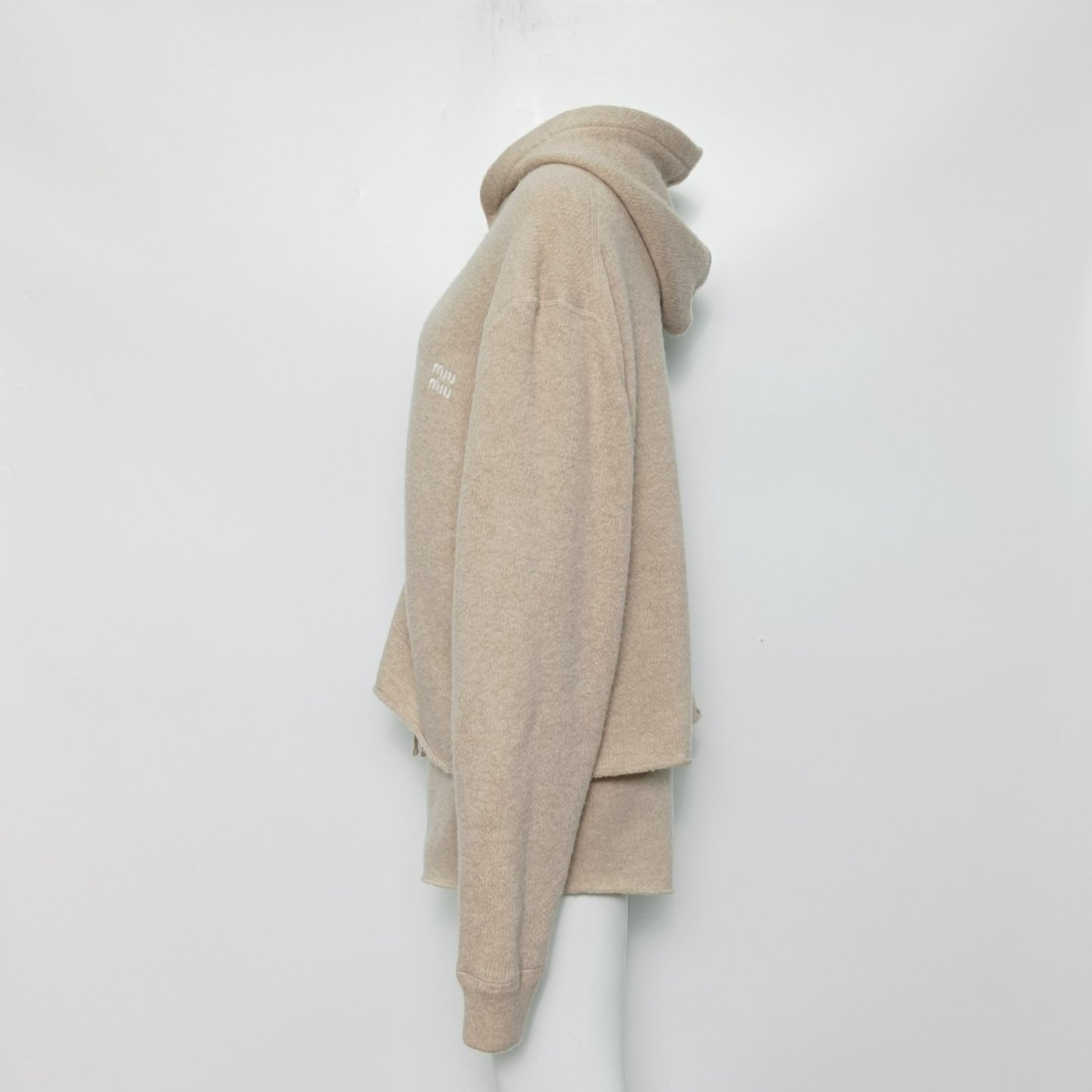 MIUMIU Camel Logo Embroidered Knit Hooded Jacket size 40 Trousers size 36 Set