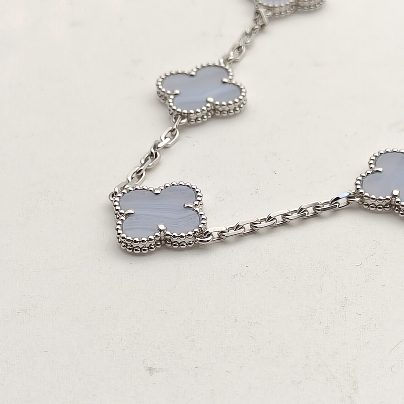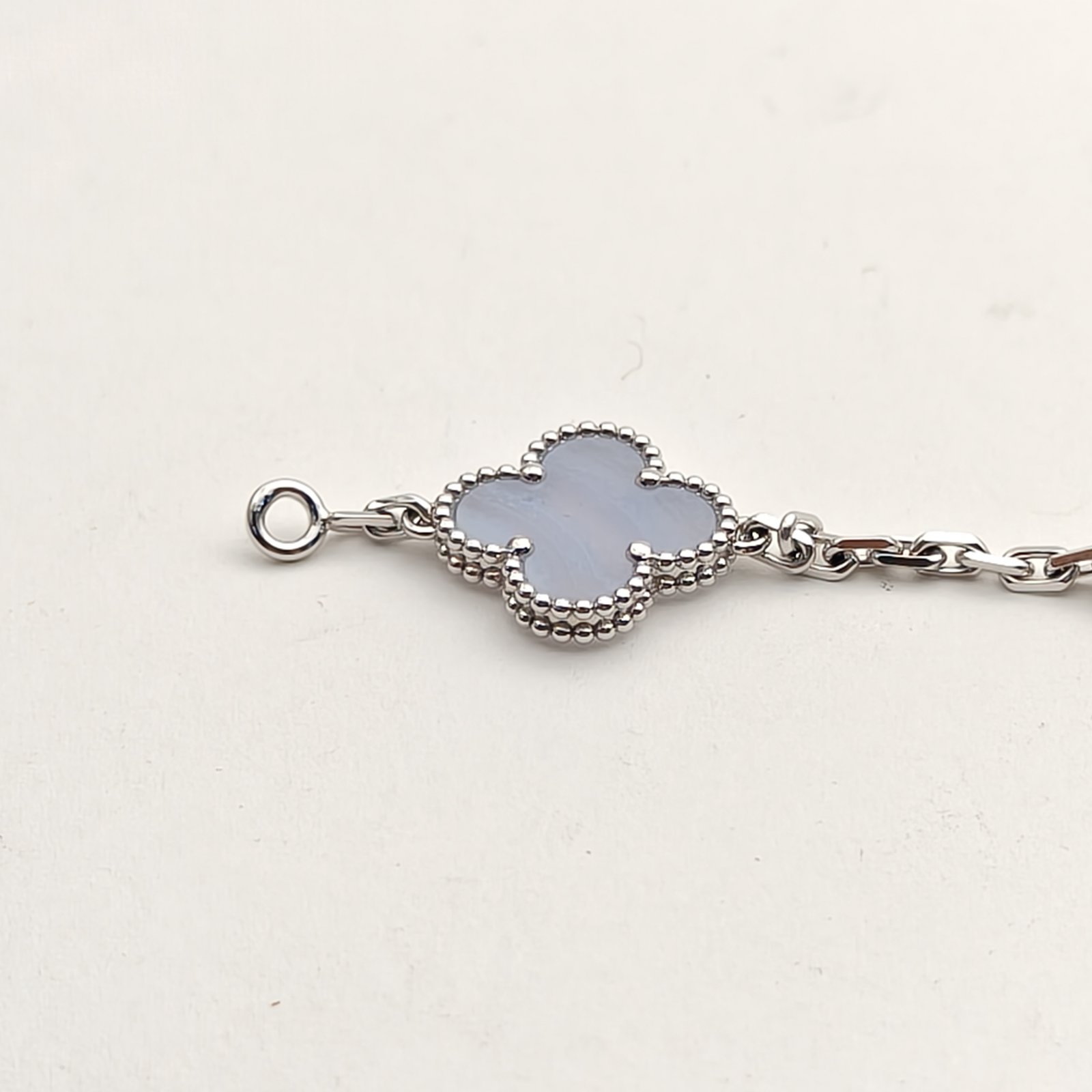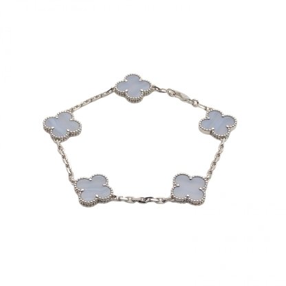 VAN CLEEF&ARPELS Vintage Alhambra medium five-petal bracelet new clasp 18K White Gold,Purple Chalcedony