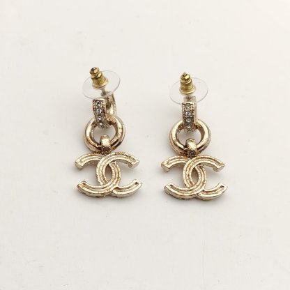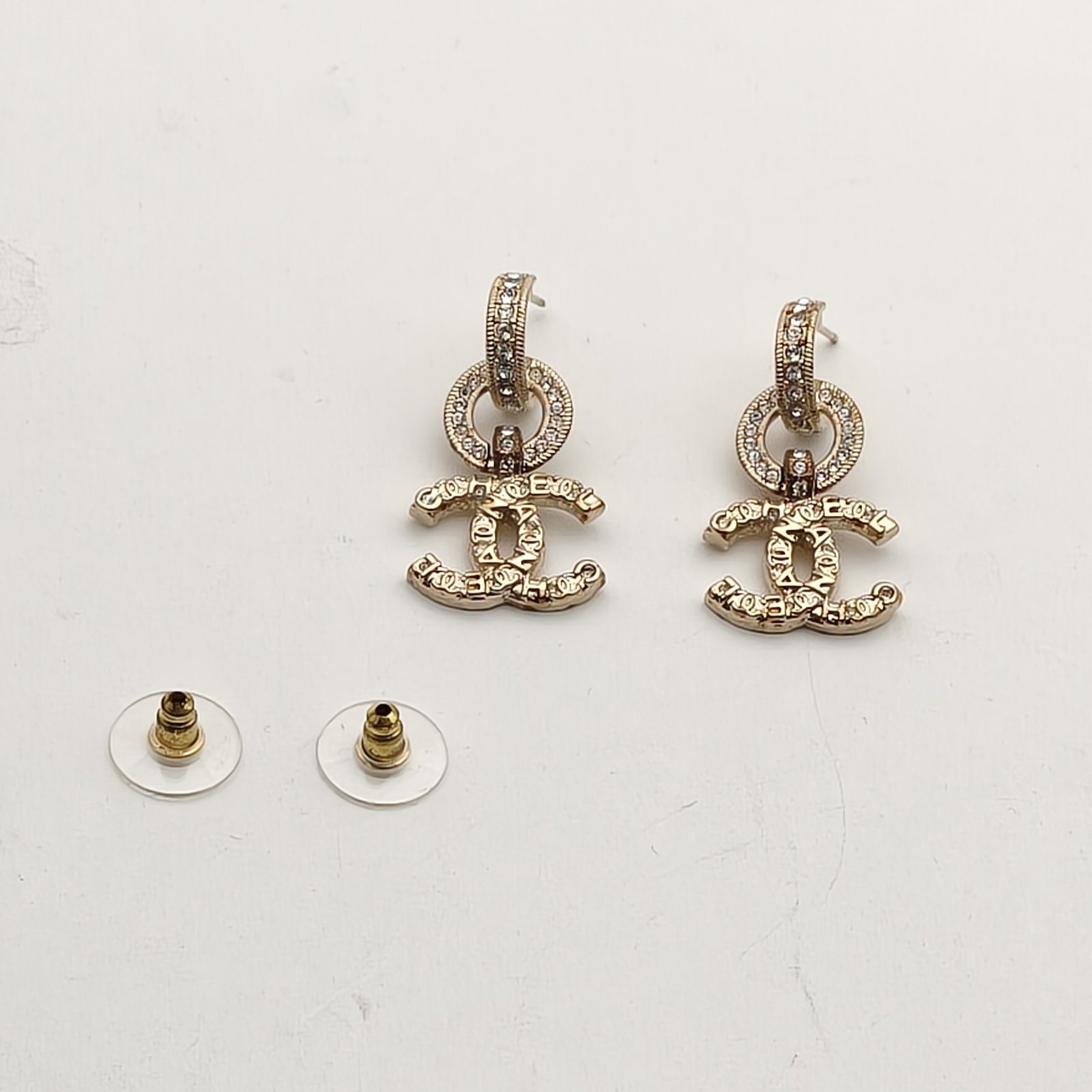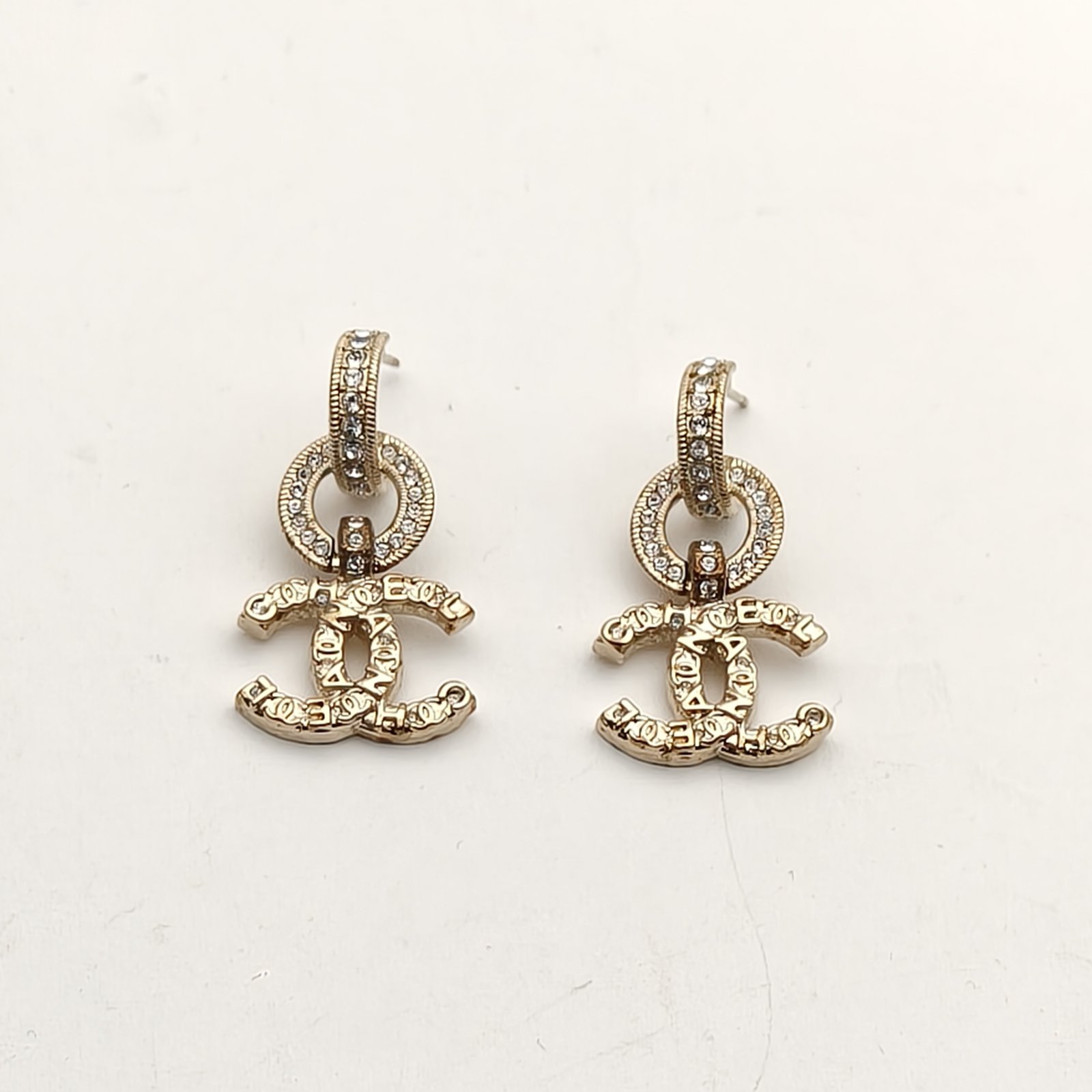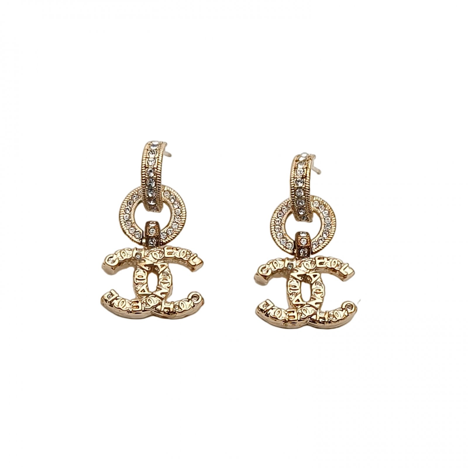 CHANEL 21P Relief carving logo Double C Pendant Earrings Alloy
