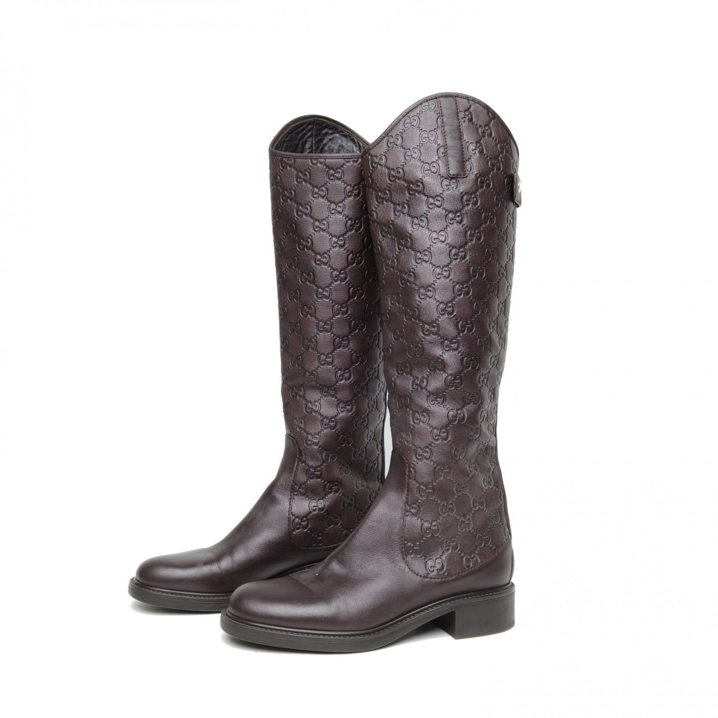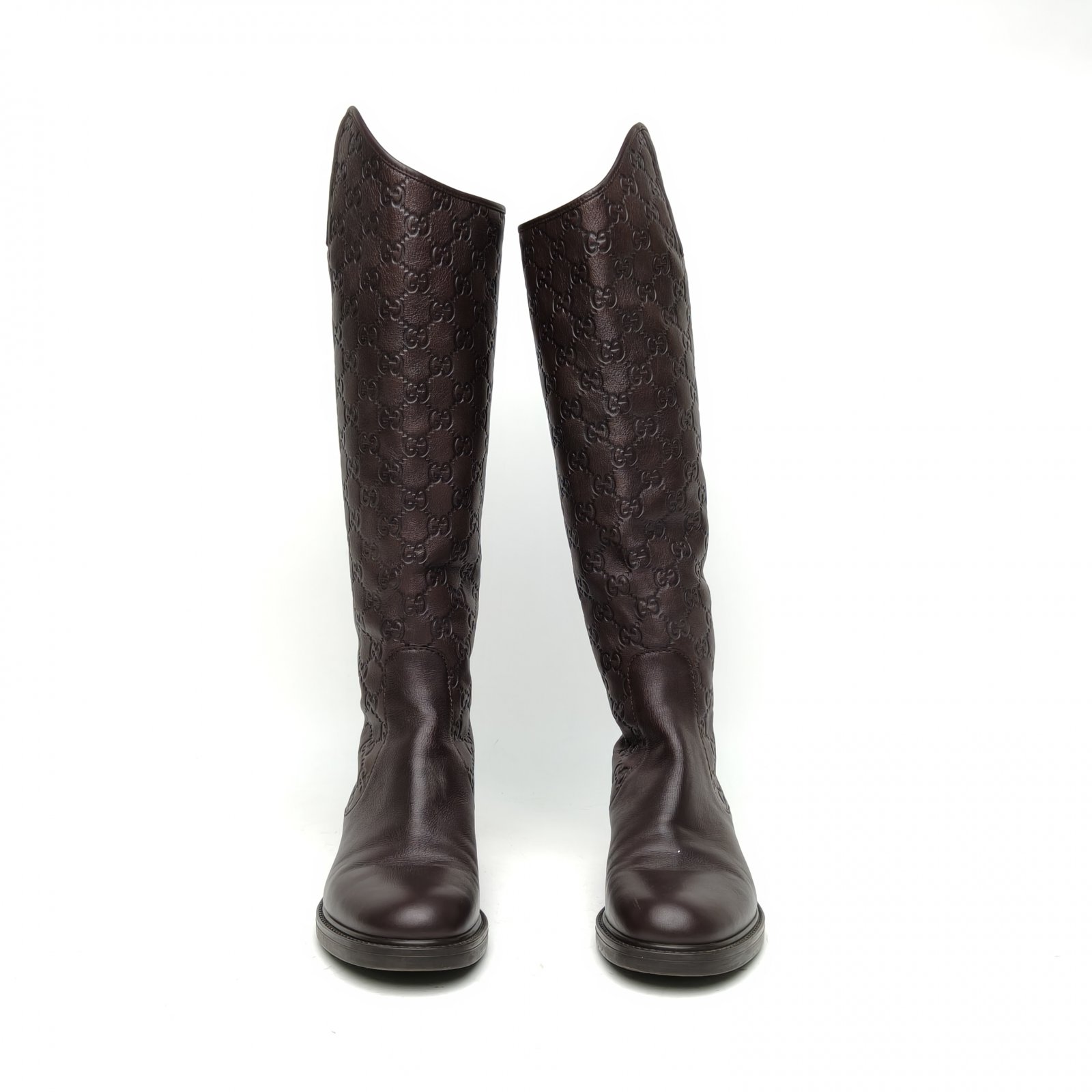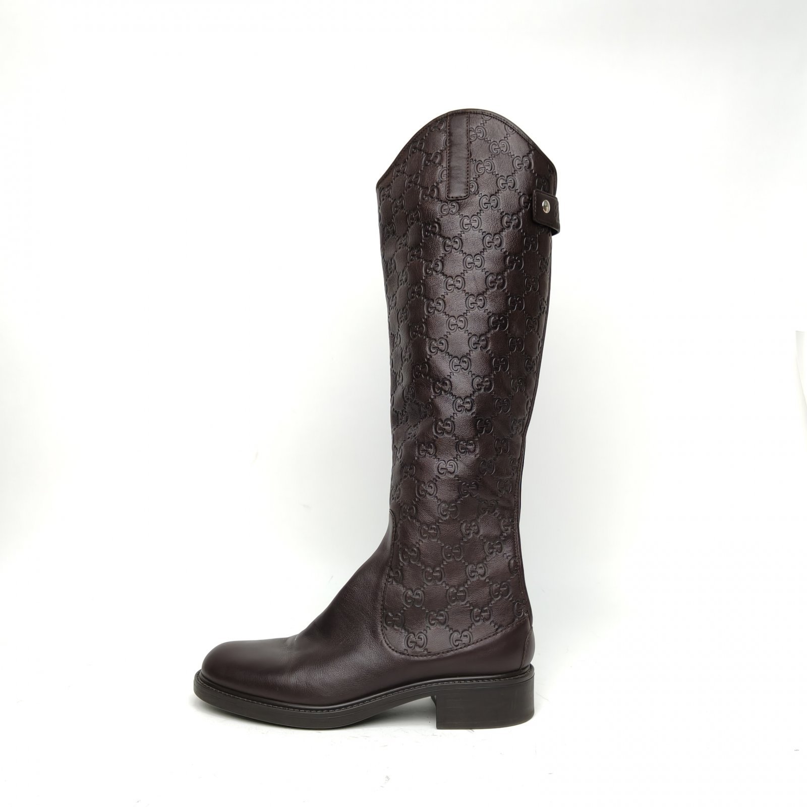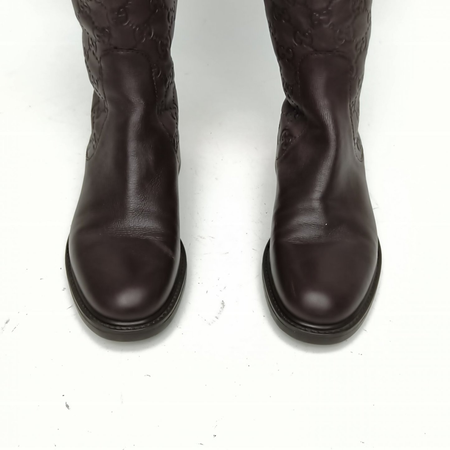 GUCCI Brown GG Monogram Embossed Knee-high Boots 37.5