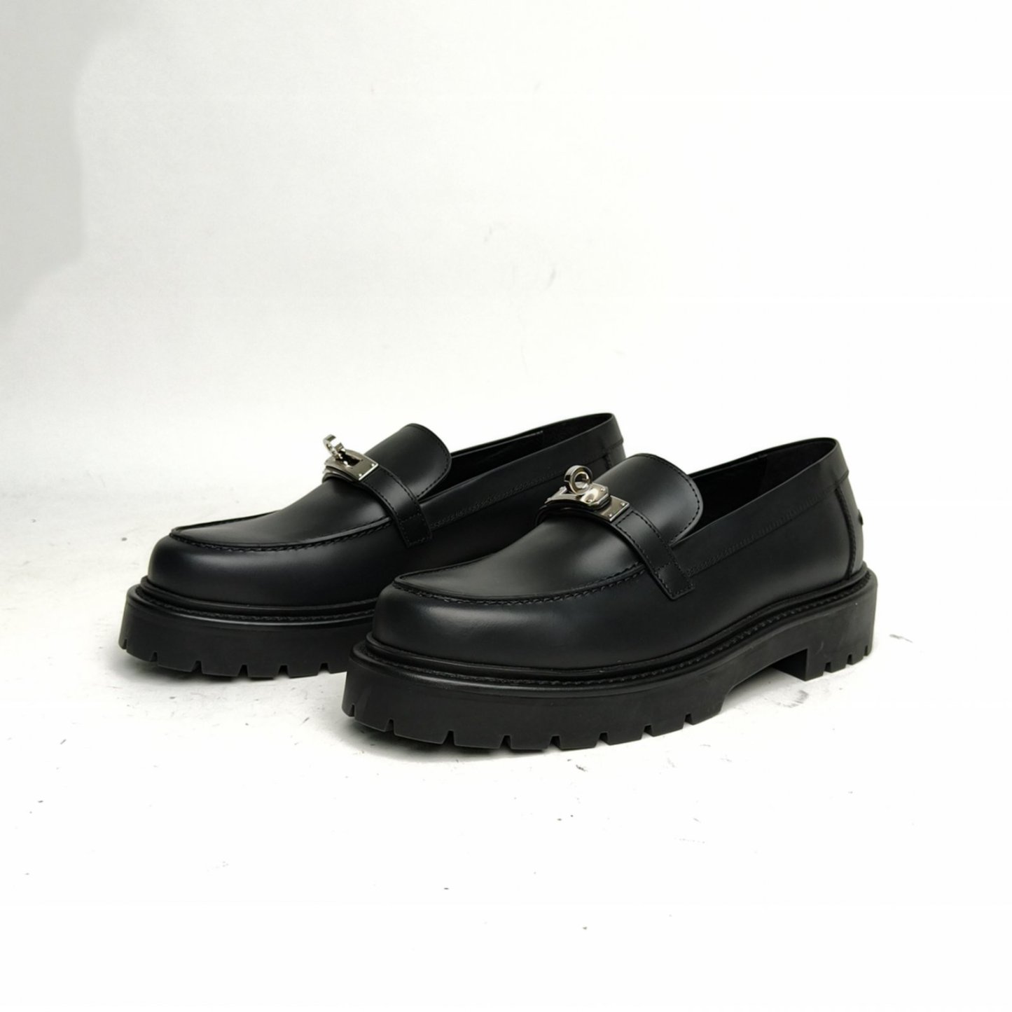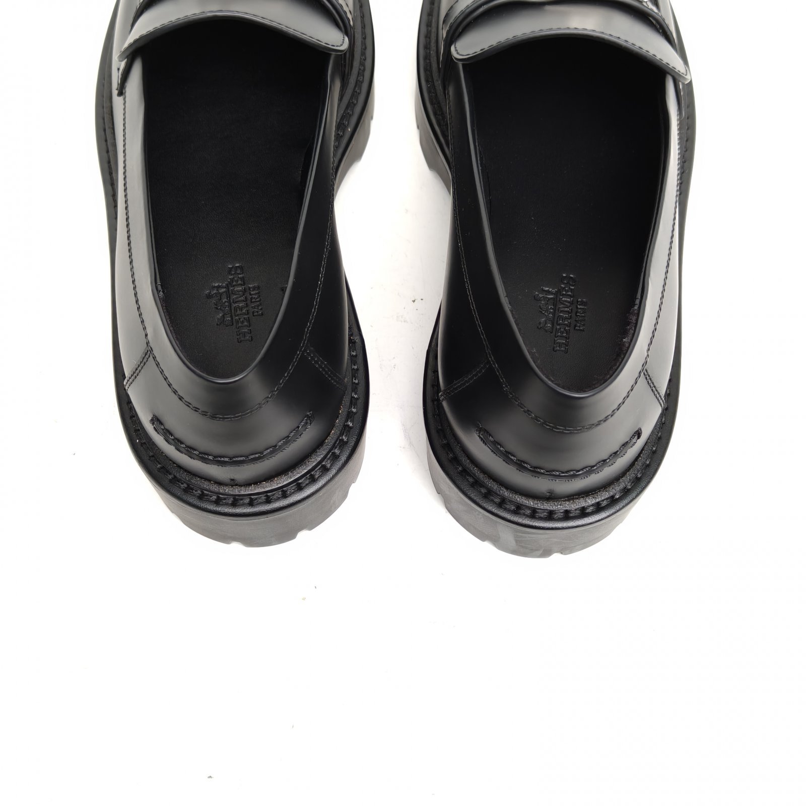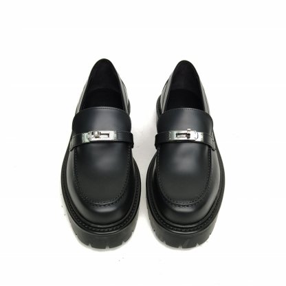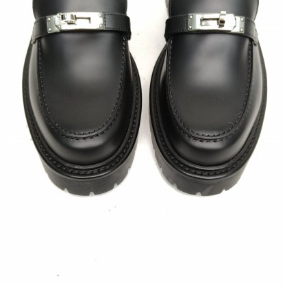 HERMES Black kelly Loafers 38