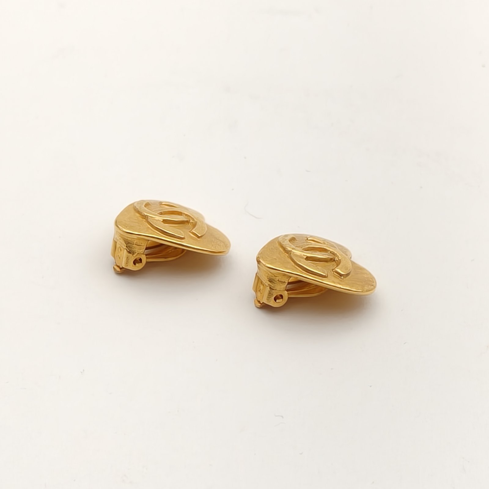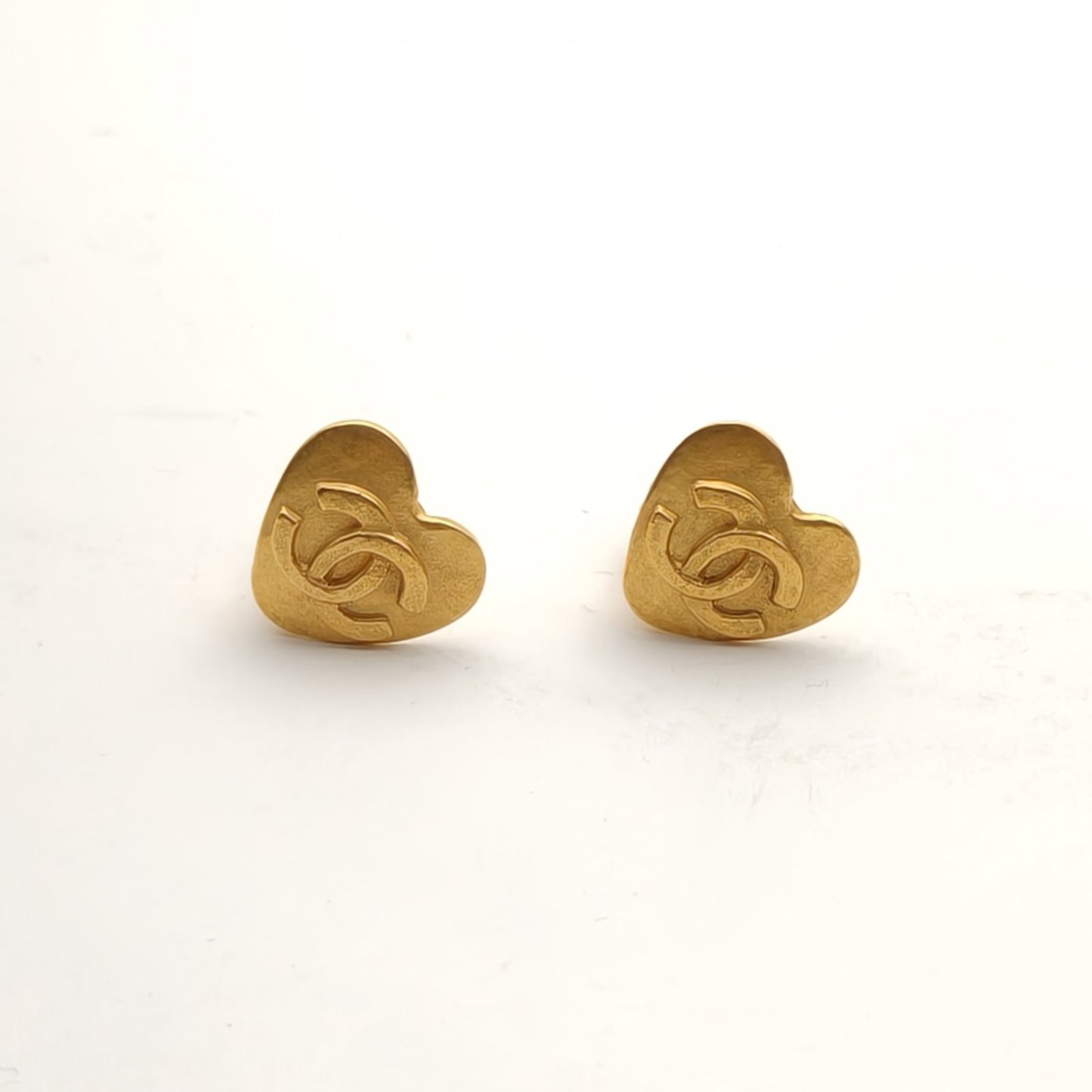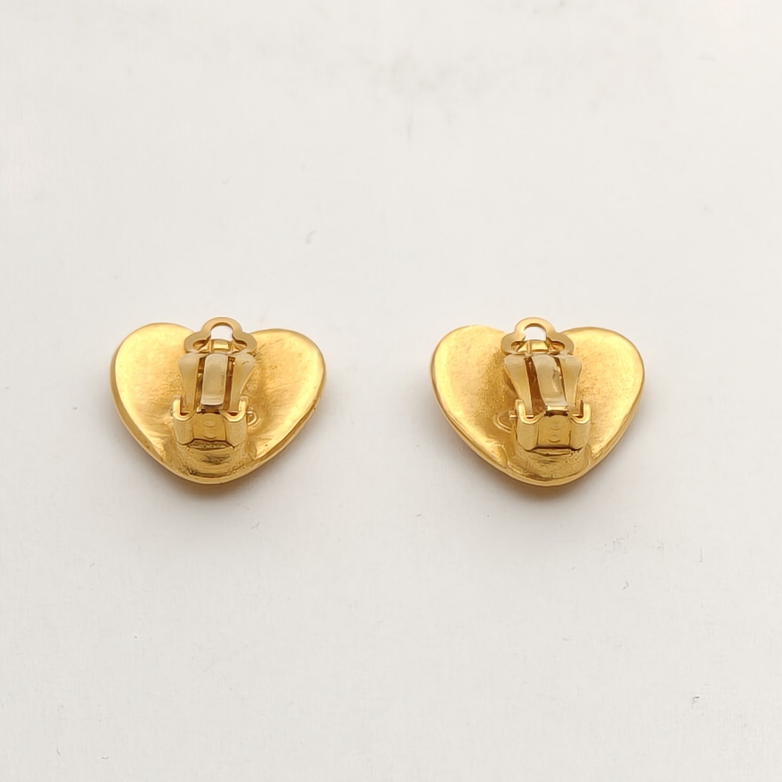 CHANEL 95P Vintage Heart Double C Clip-on Earrings Alloy
