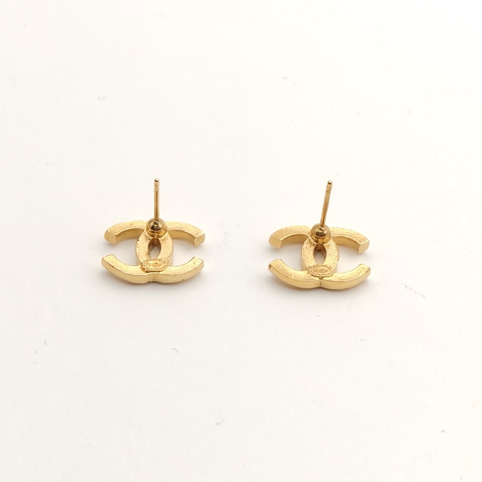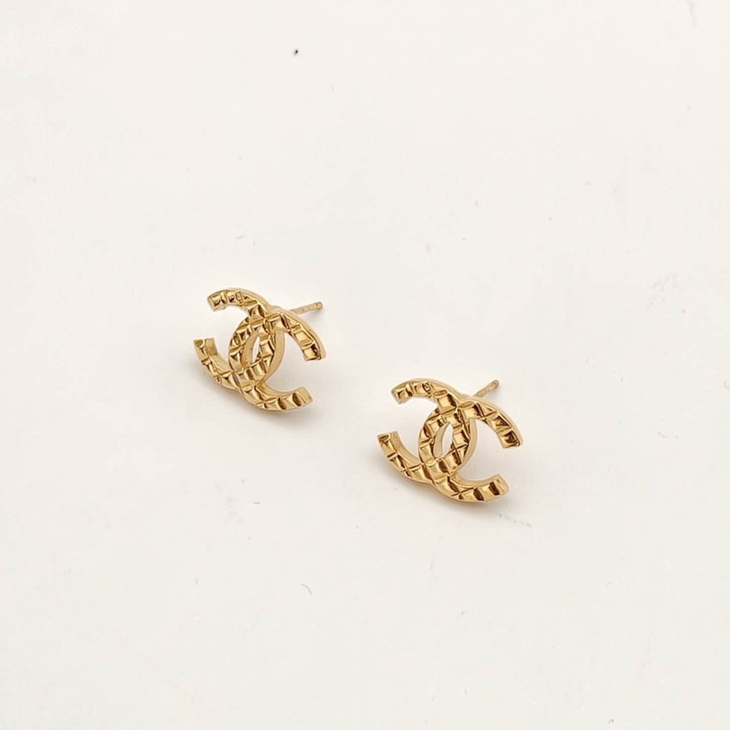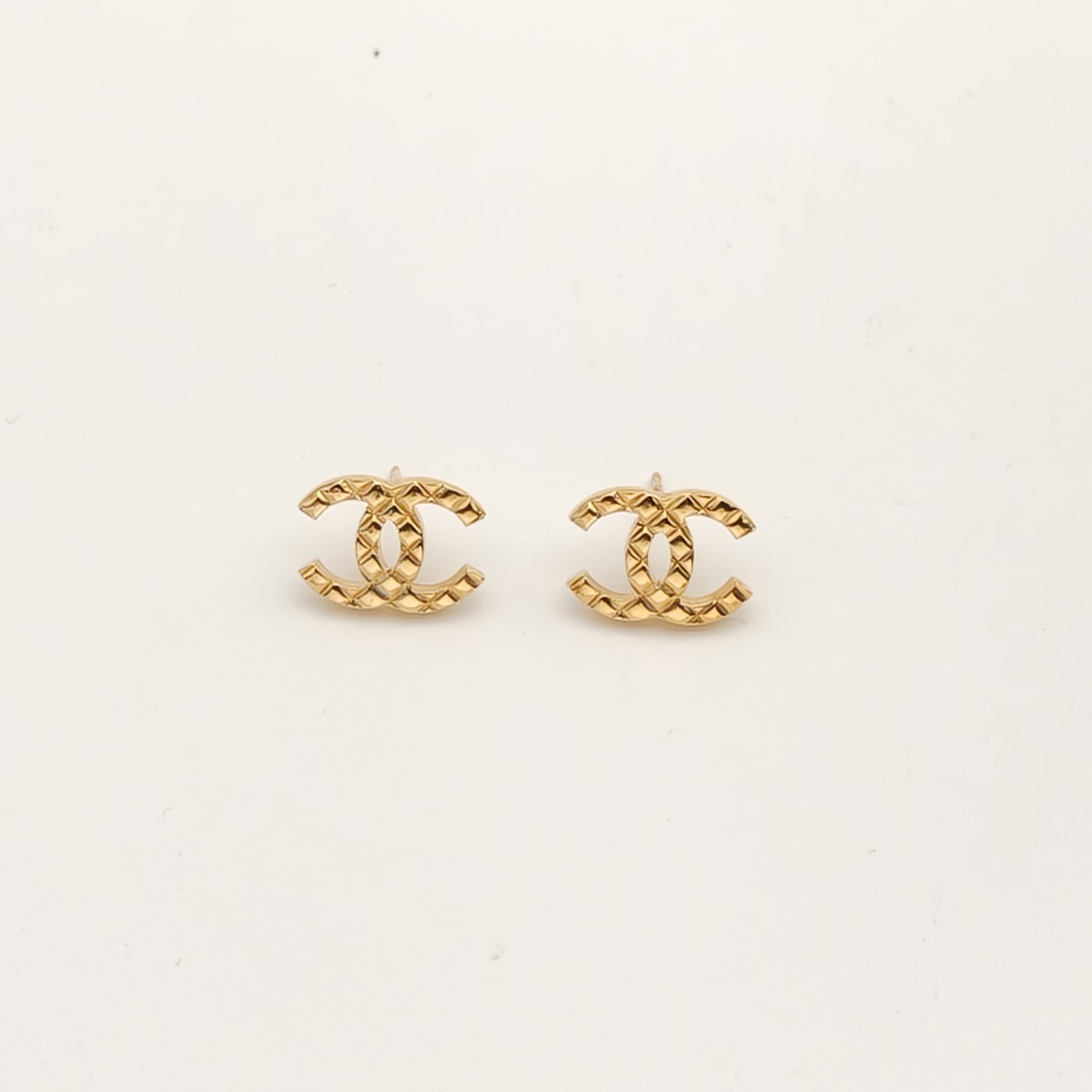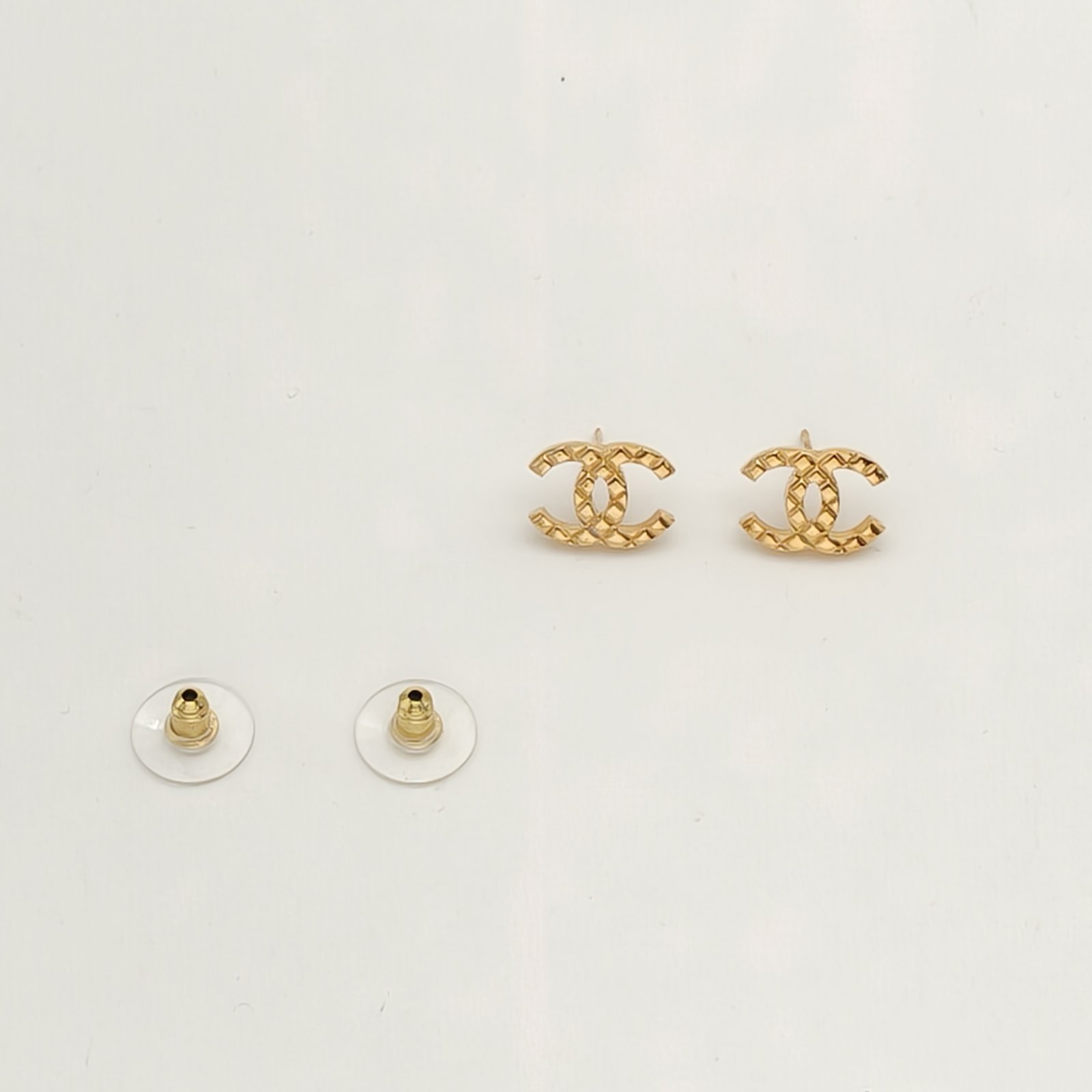 CHANEL 24P Classic Quilted Pattern Double C Earrings Alloy