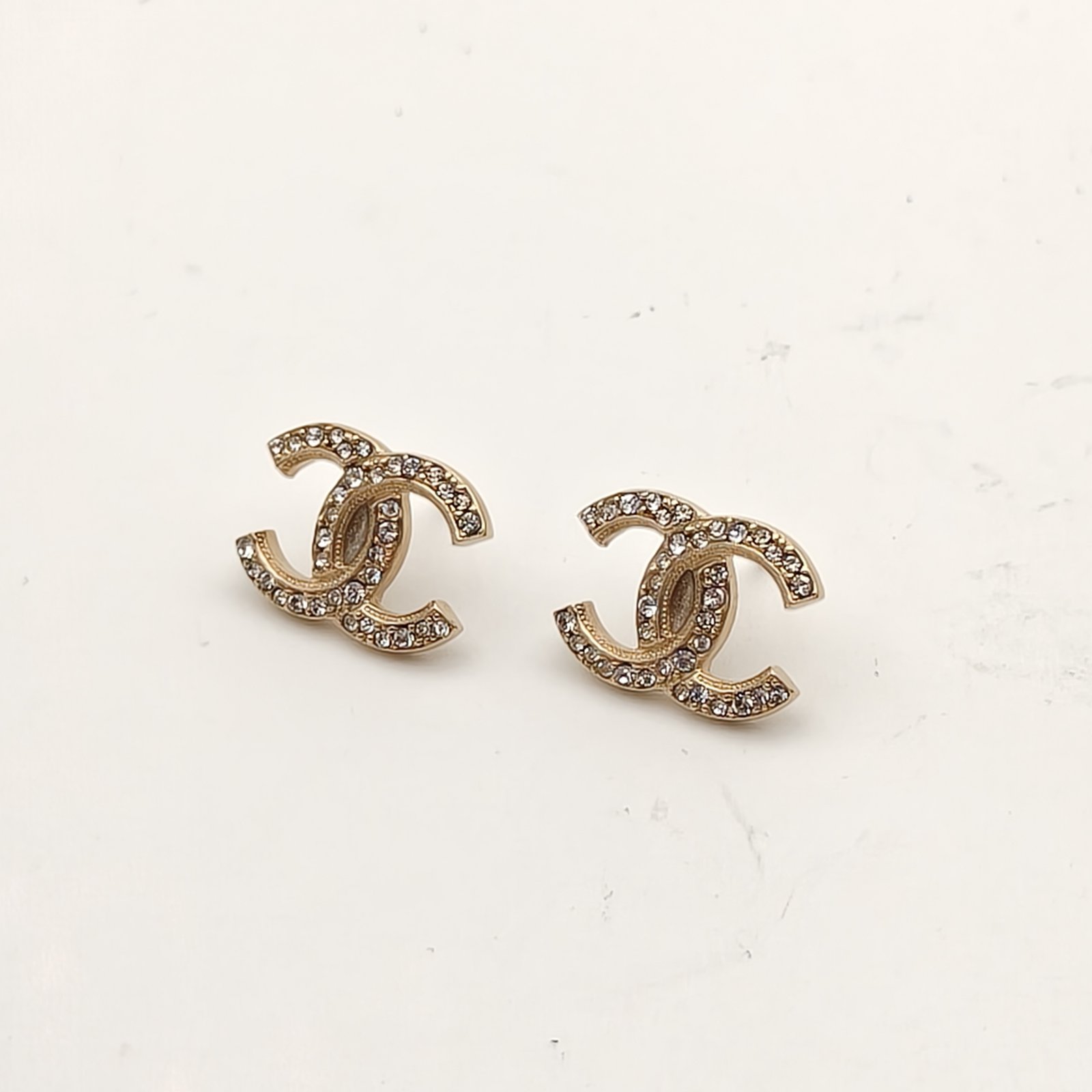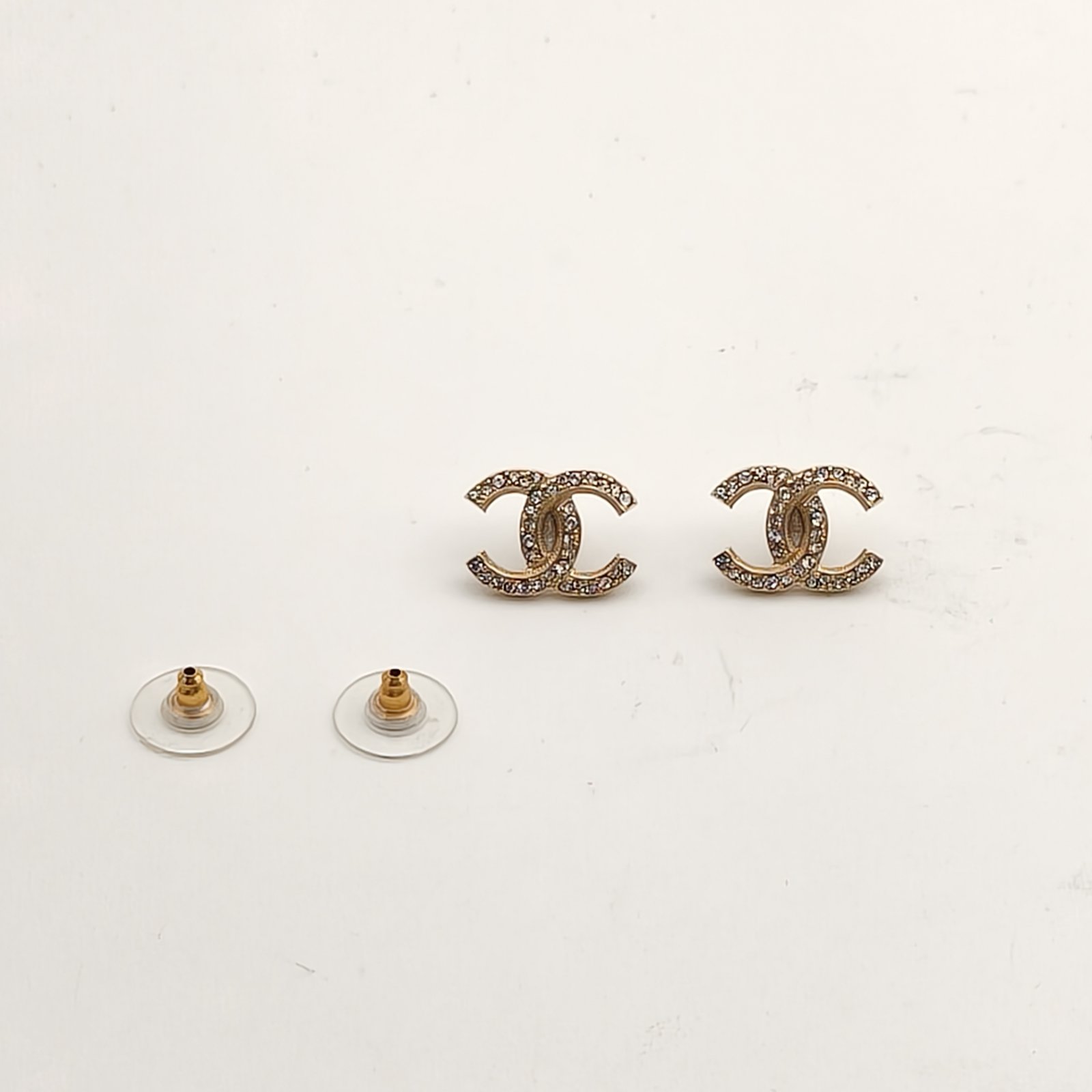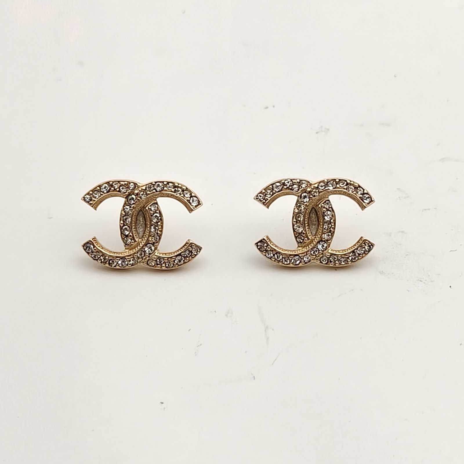 CHANEL Double C Rhinestone Diamond Stud Earring Alloy