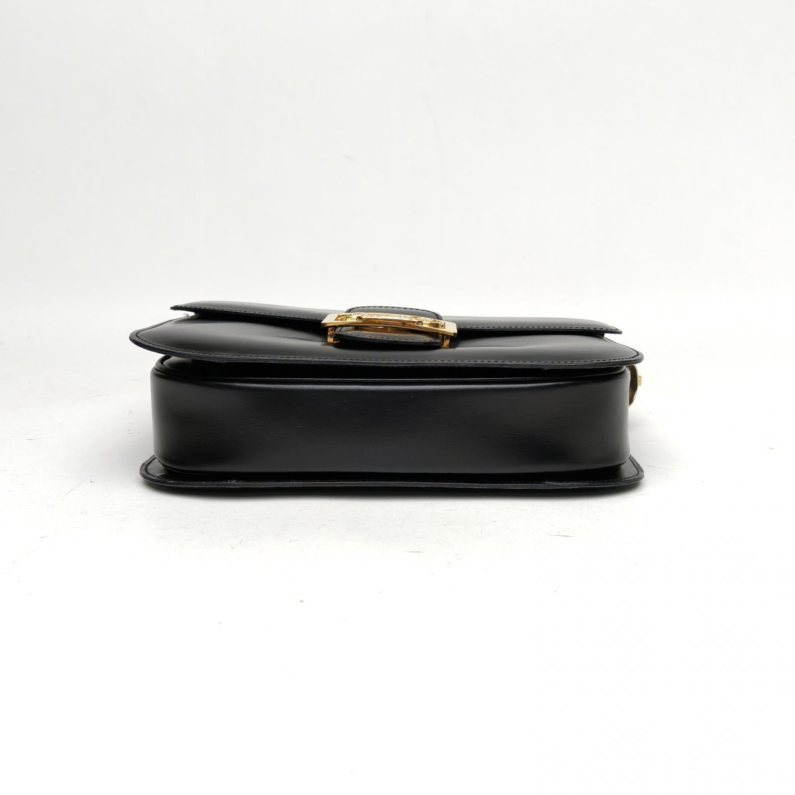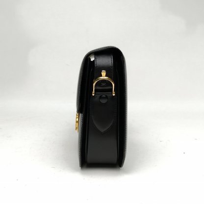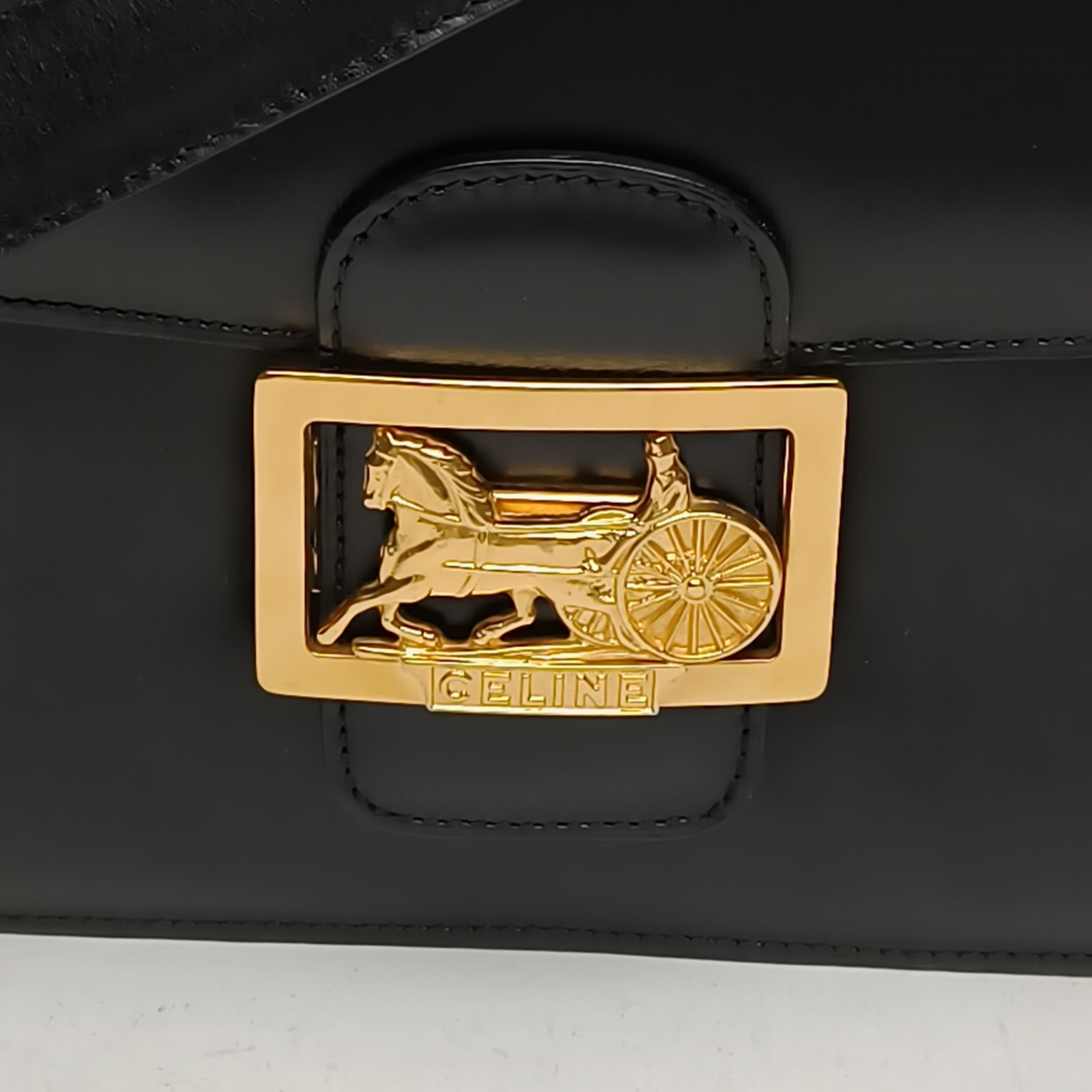 CELINE Black Gold Hardware Vintage Carriage Buckle Shoulder Bag