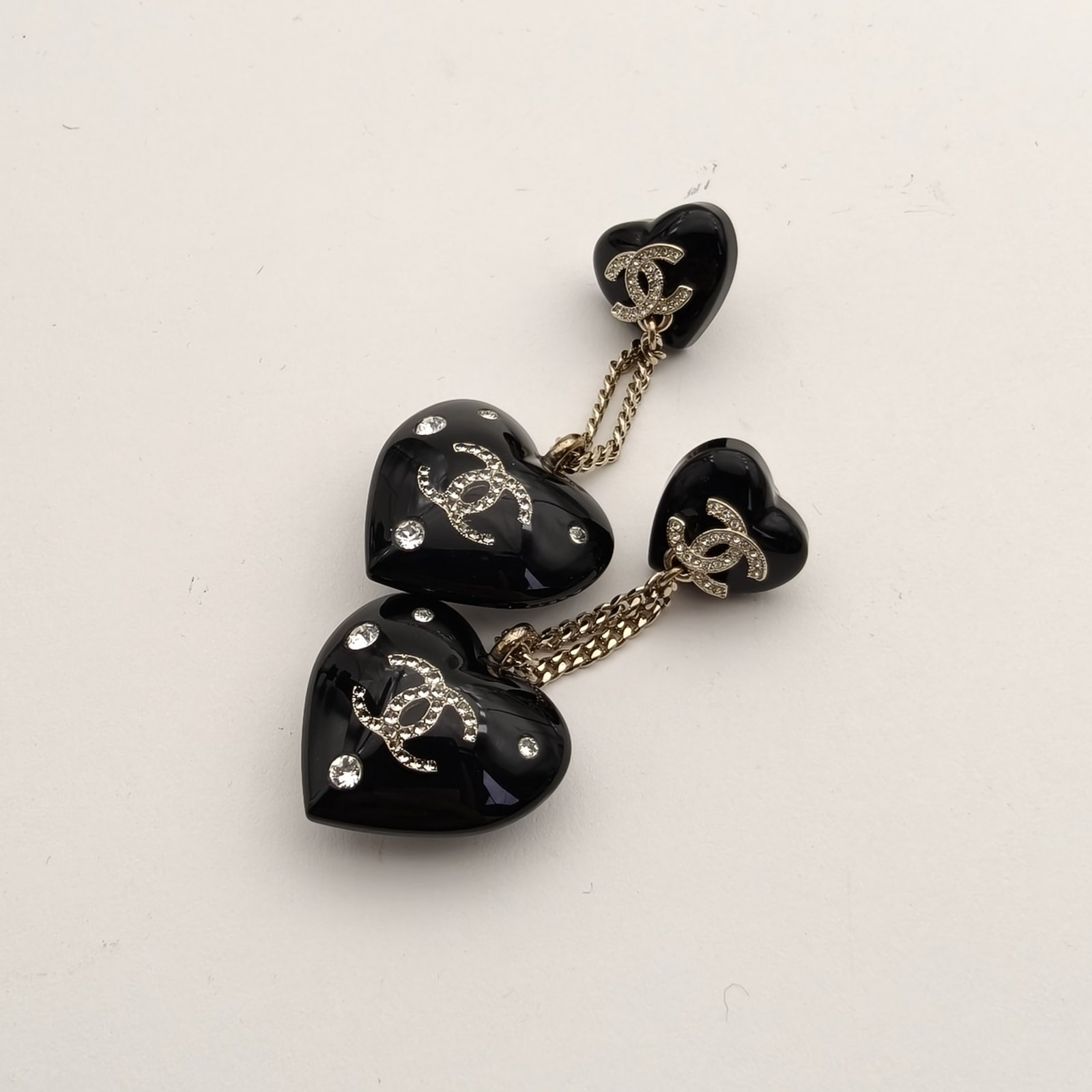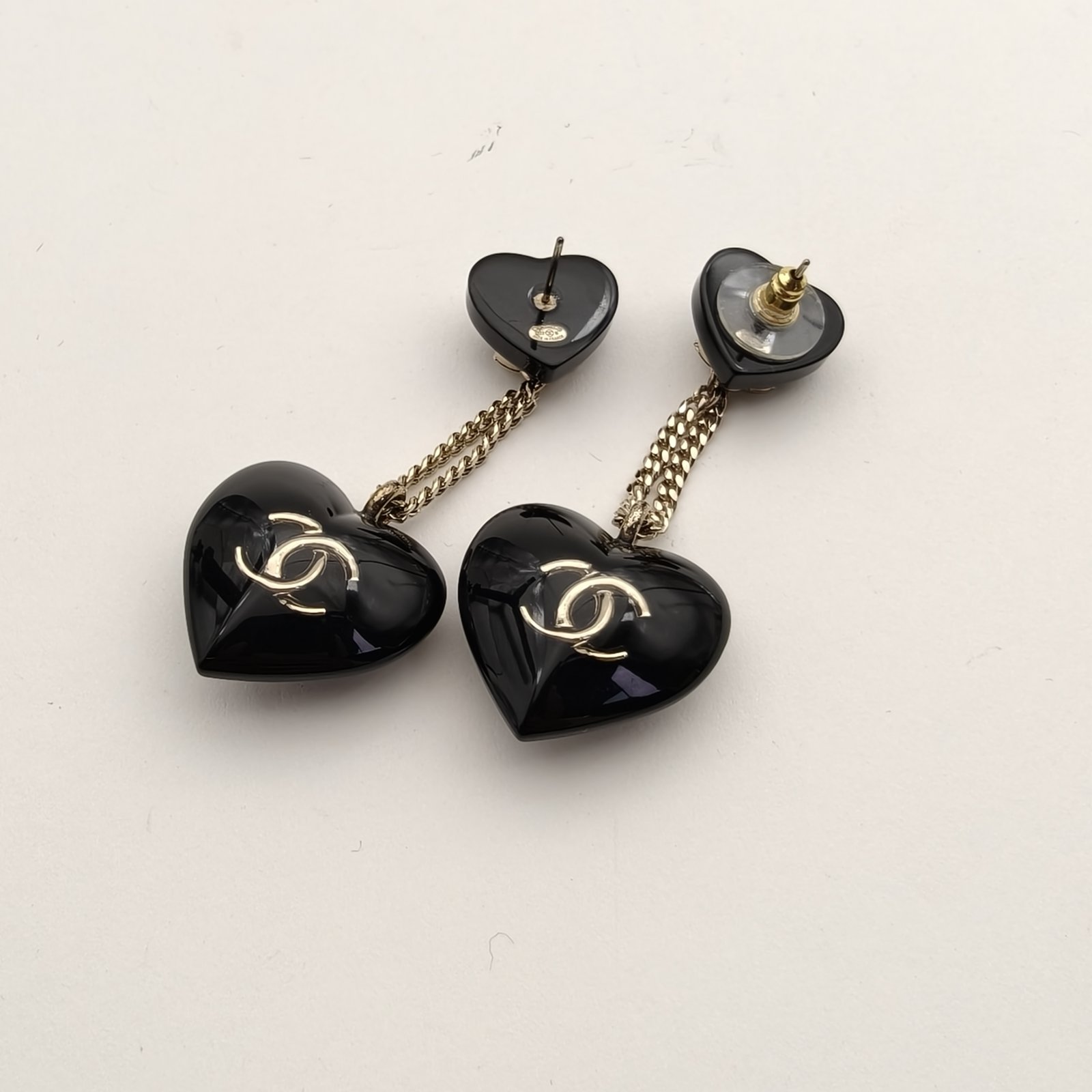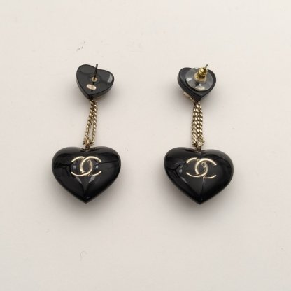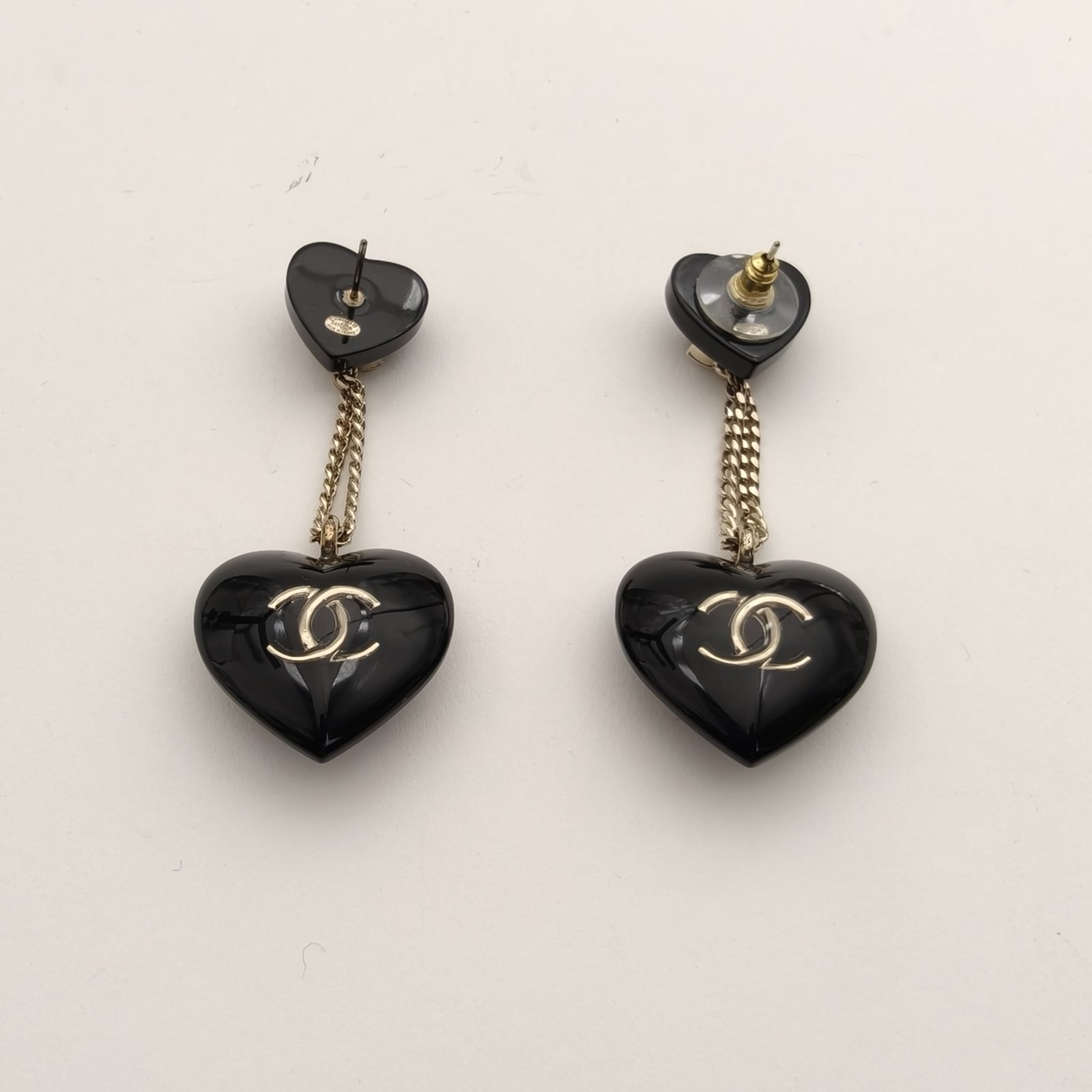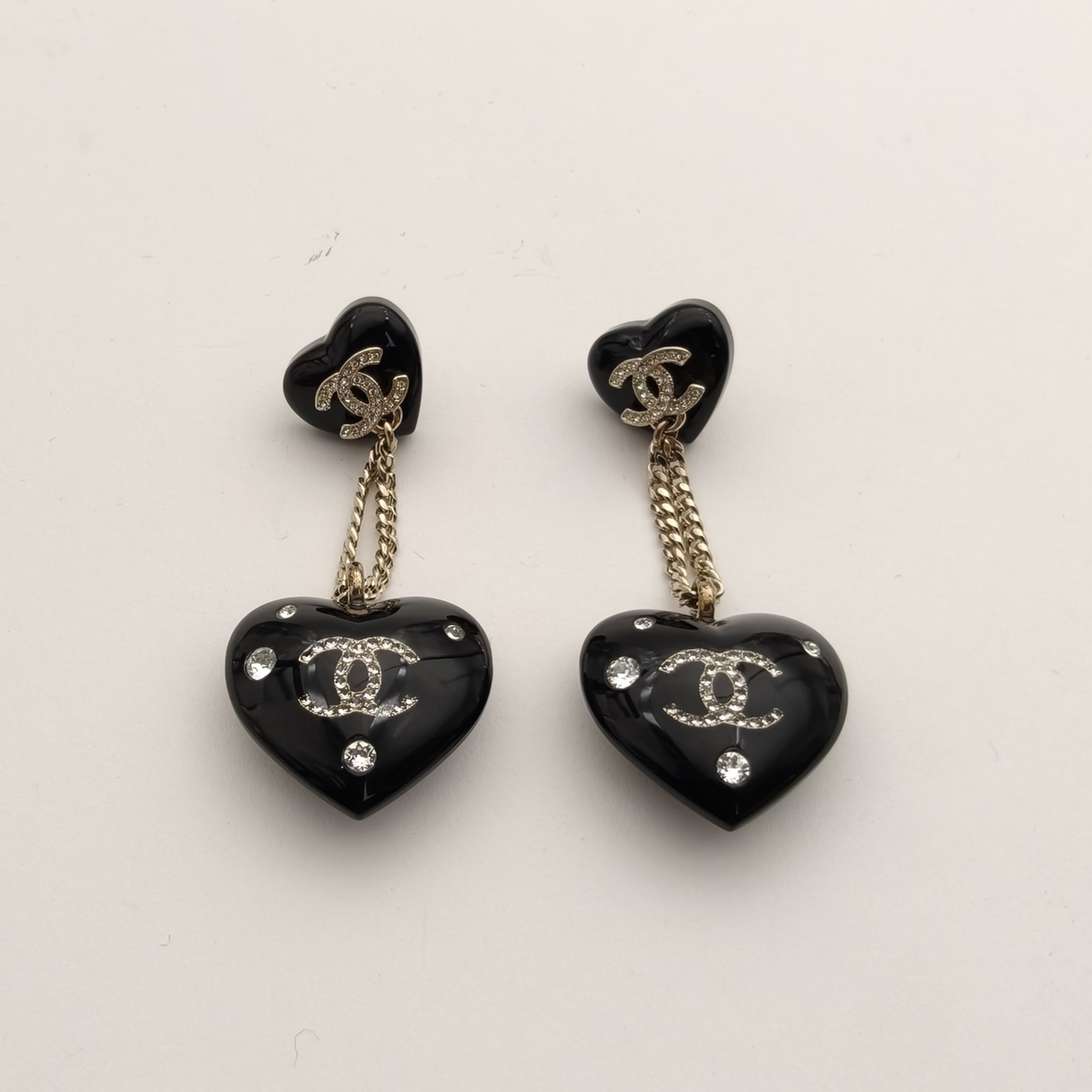 CHANEL 22B Double C Crystal Acrylic Heart Earrings Alloy