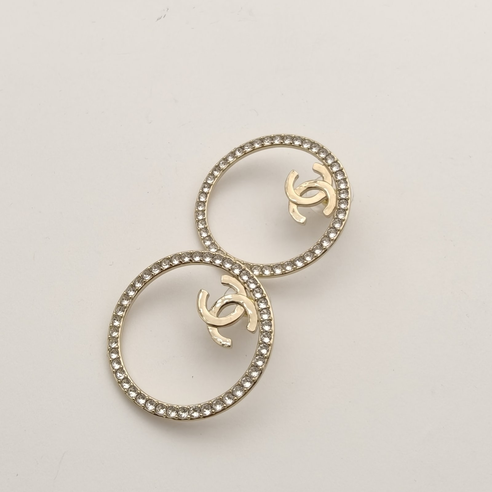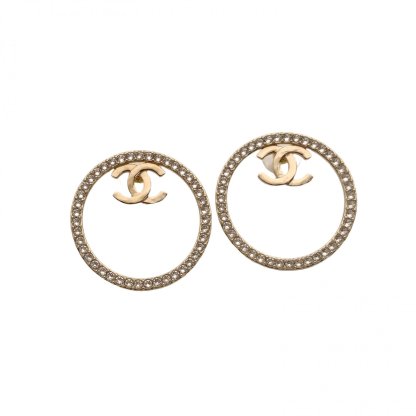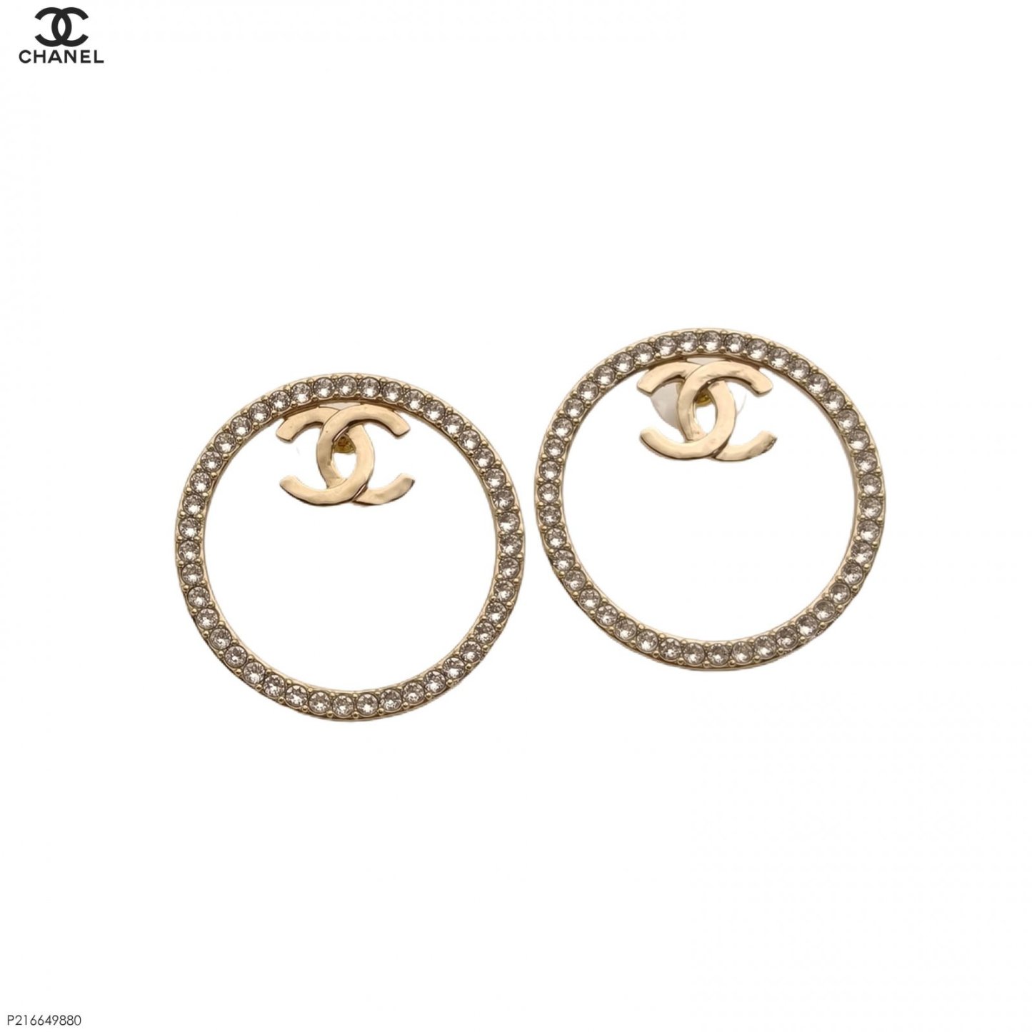 CHANEL 22B Round Diamond Hoop Earrings Alloy
