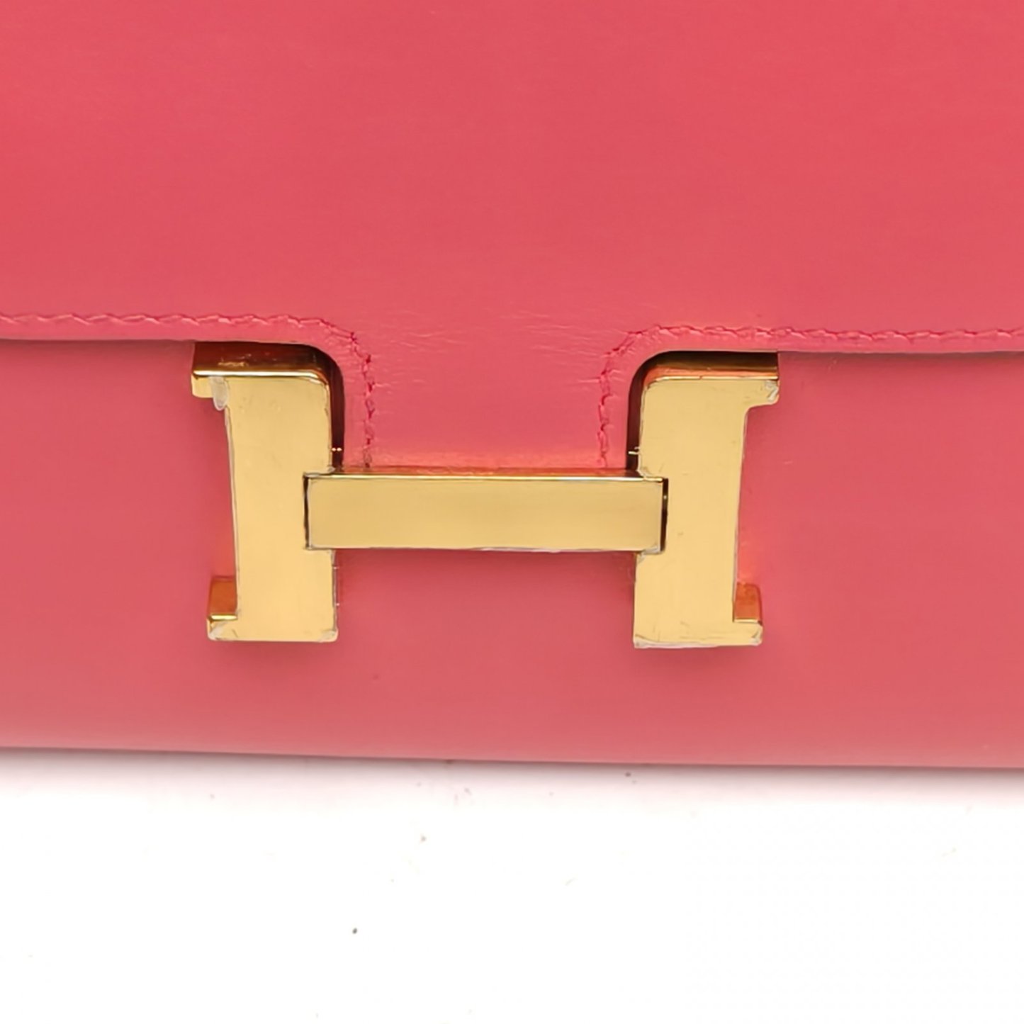 HERMES U5 Lipstick Pink Tadelakt Leather R Engraving Gold Hardware Constance Coin Bag