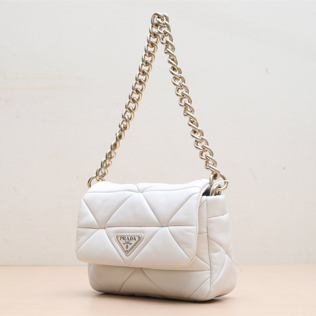 PRADA Prada Felice Pochette Crossbody Bag, White, Leather S