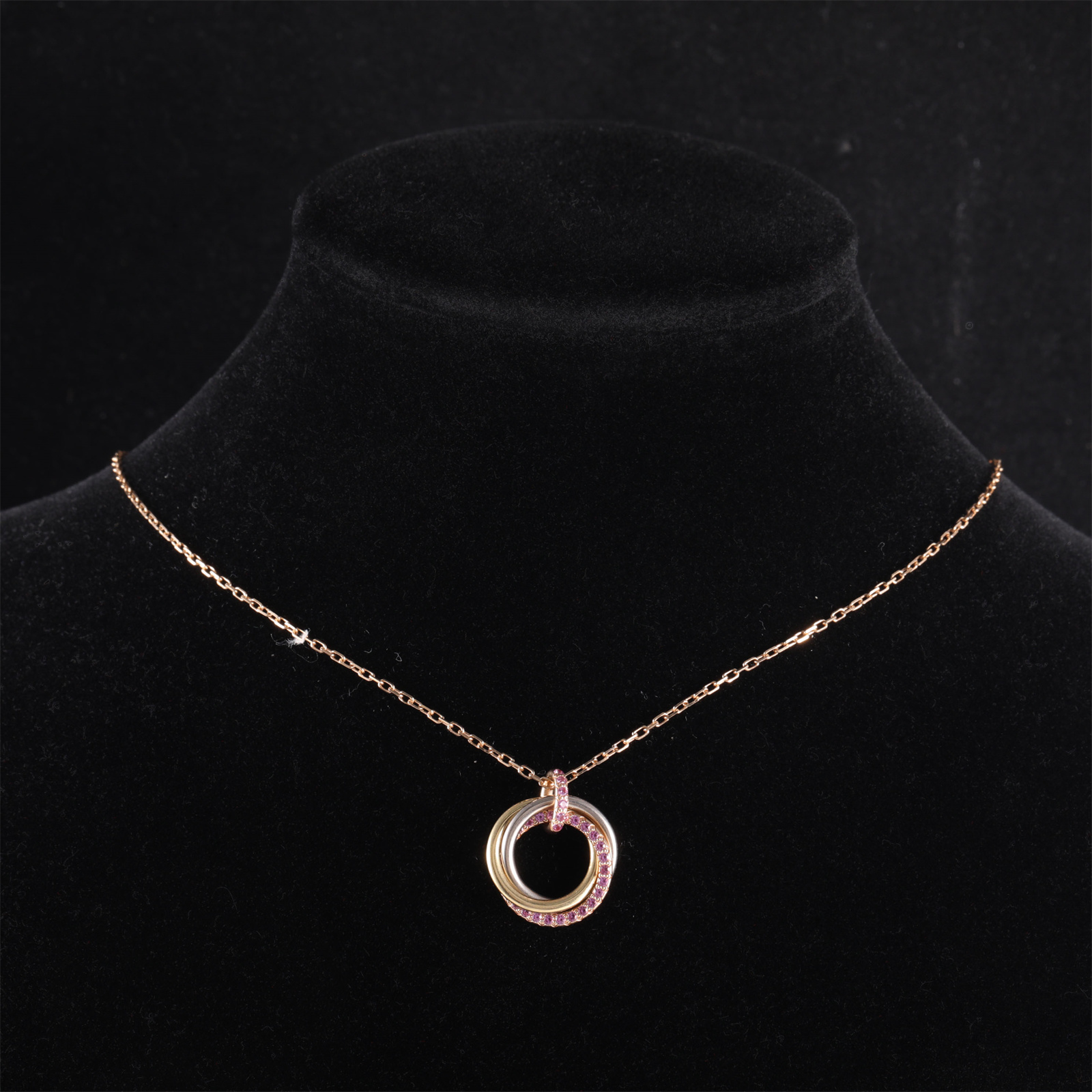 CARTIER Rose Gold Trinity Three-Ring Pink Sapphire Necklace with 18k White Gold 18K 18K Gold,18K White Gold,18K Rose Gold,Diamond