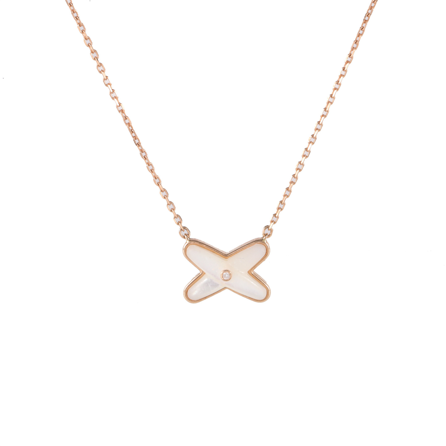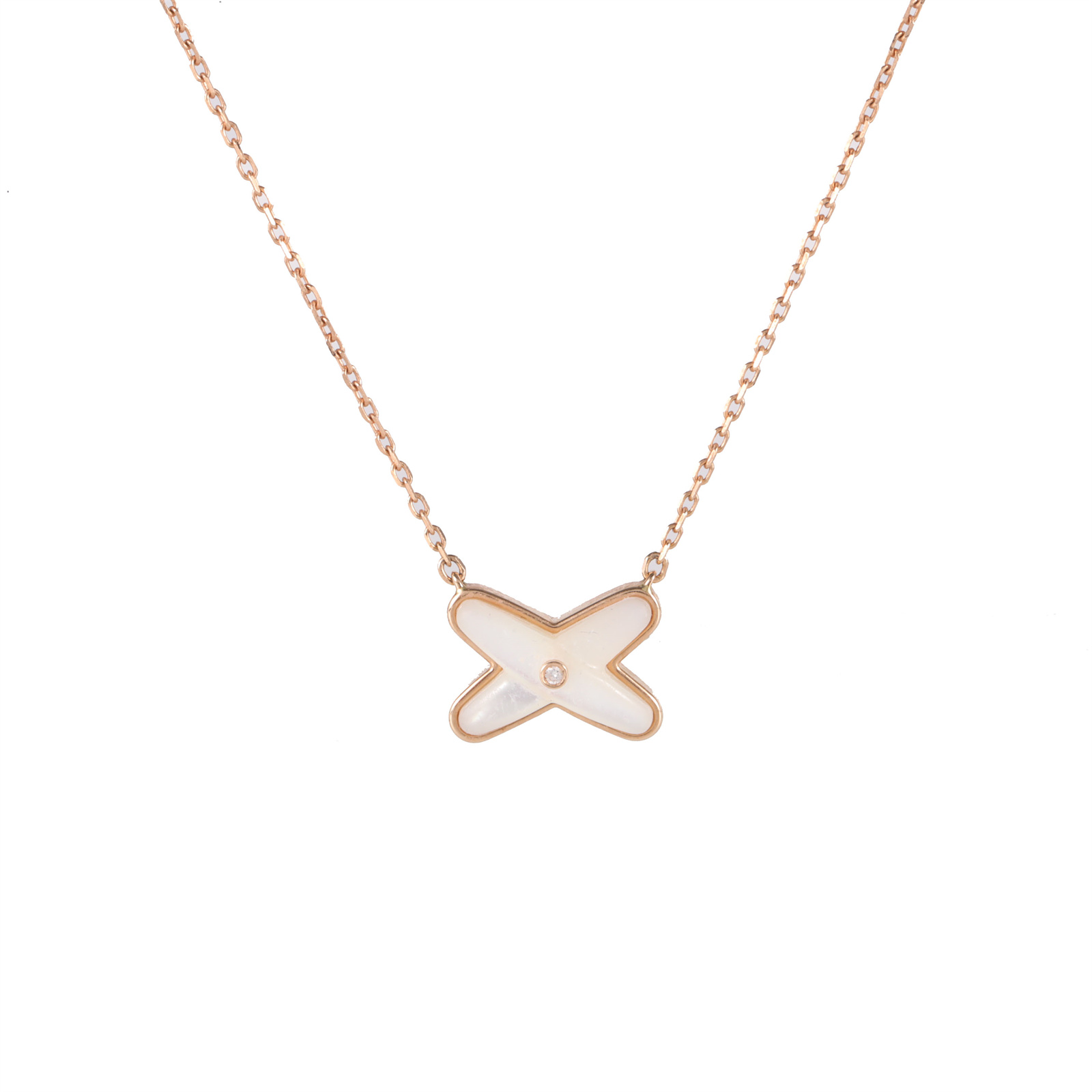 CHAUMET Juxe De Liens Pearl Mother-of-Pearl Single Diamond Small Fork Necklace 18K Rose Gold,Diamond