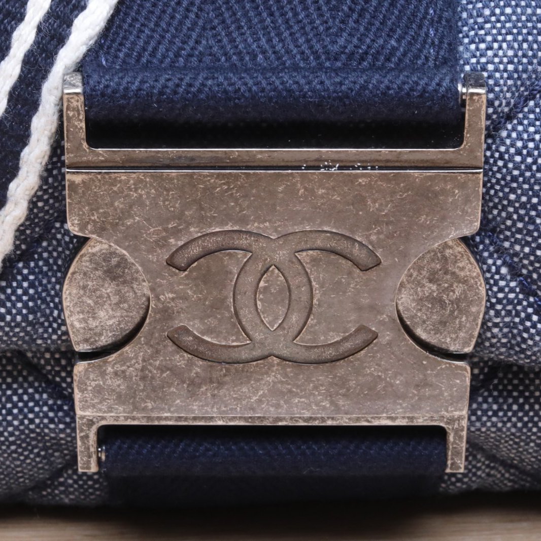 CHANEL Blue Denim 2017 Silver Hardware Runway Style Airport Bag