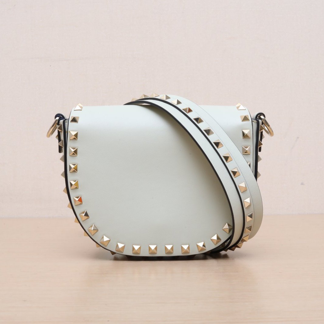 VALENTINO Light green Leather C Rivets Saddle Bag Shoulder and Crossbody Bag
