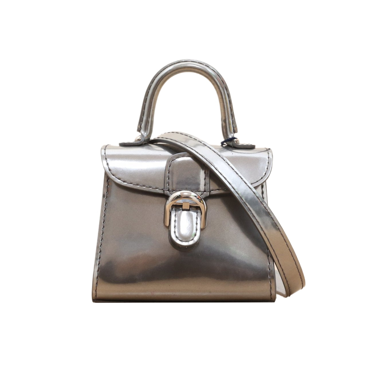 DELVAUX Silver Patent Delvaux Ultra Mini Keychain Bag, Pendant Bag, Crossbody Bag