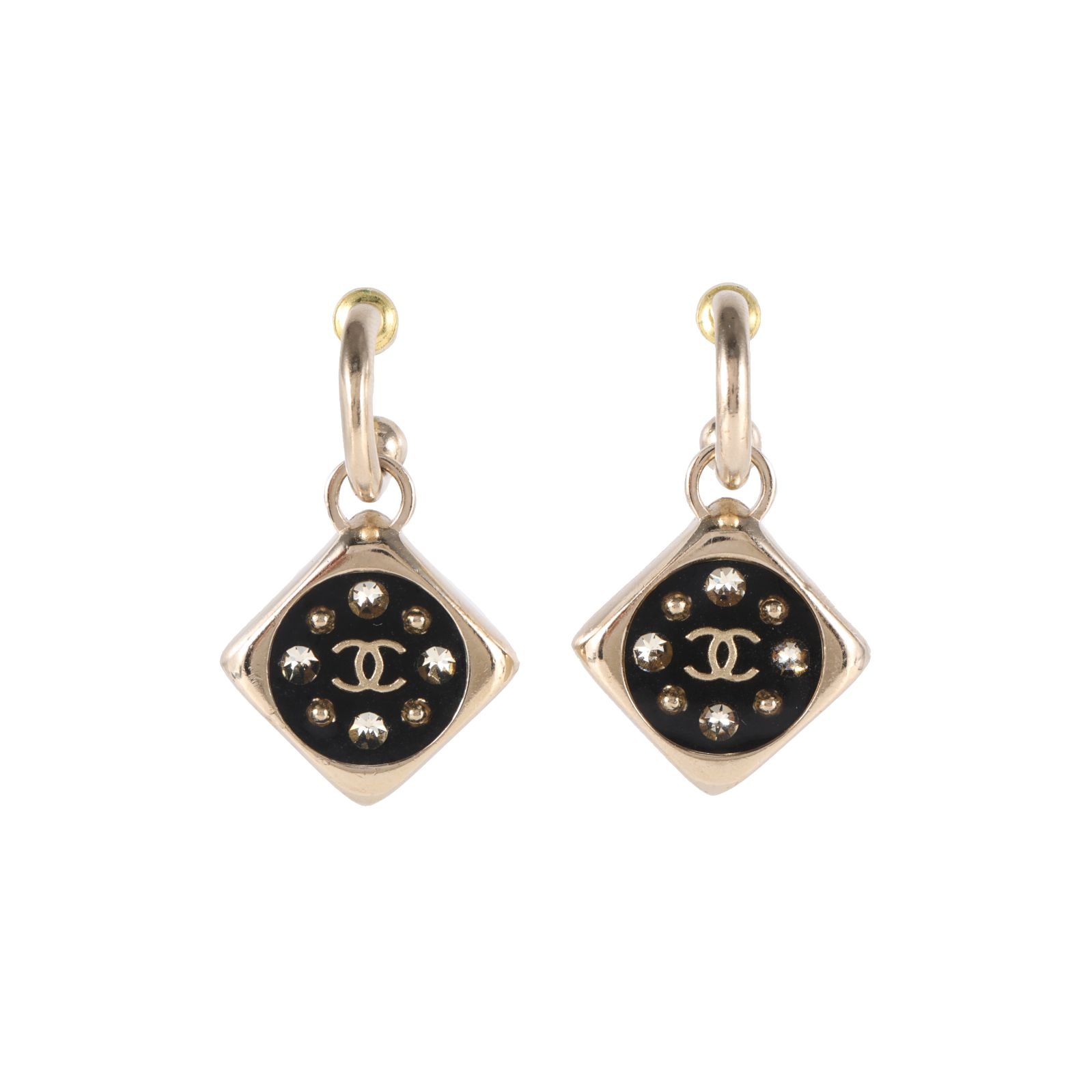 CHANEL 22P Black Square Diamond Pendant Earrings Alloy