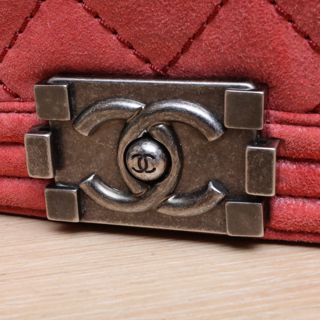 CHANEL Red Suede 2014 Sliver Hardware Leboy Vertical 18cm