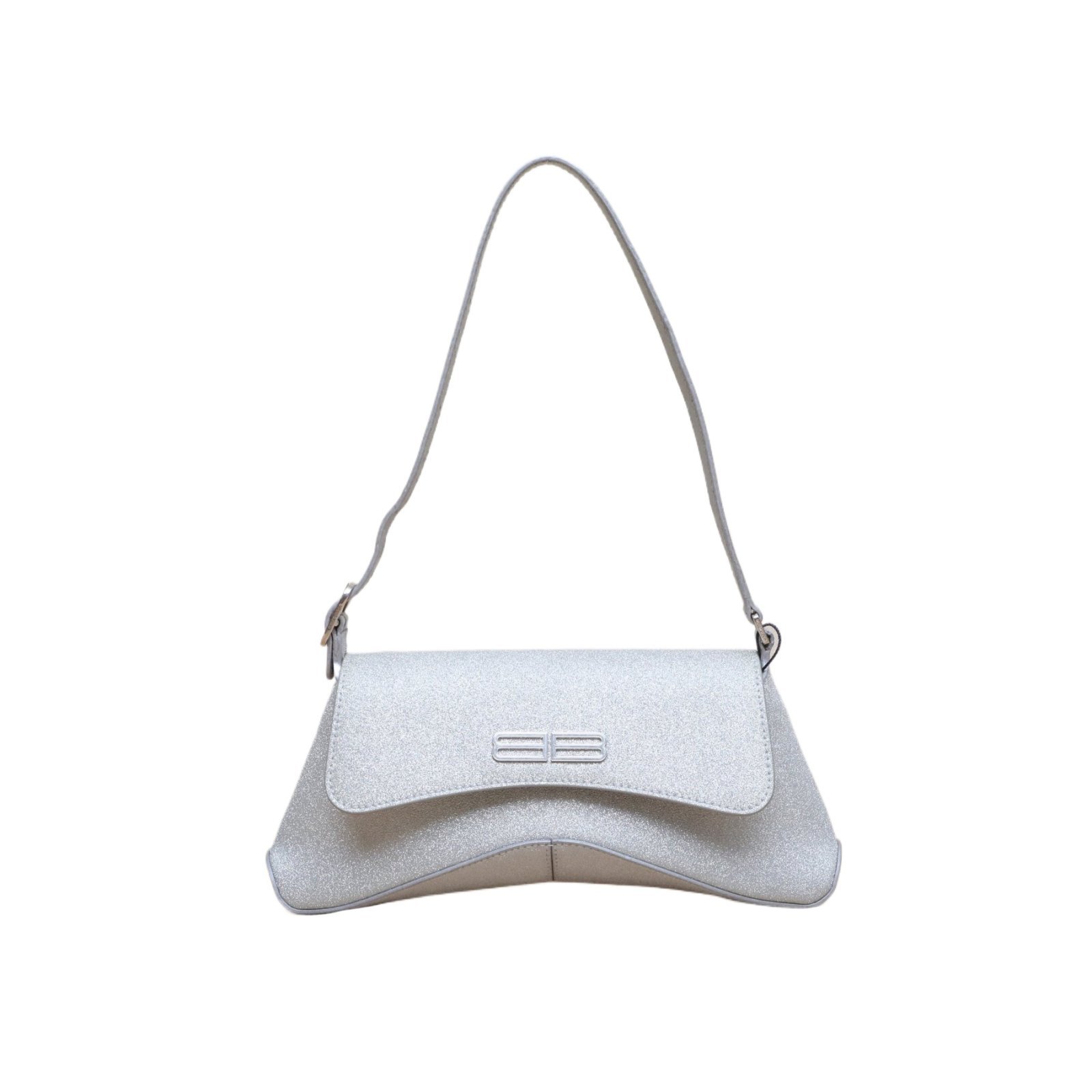 BALENCIAGA Silver, Sliver Hardware, Women's Sequined Flap Shoulder Bag, Small Size