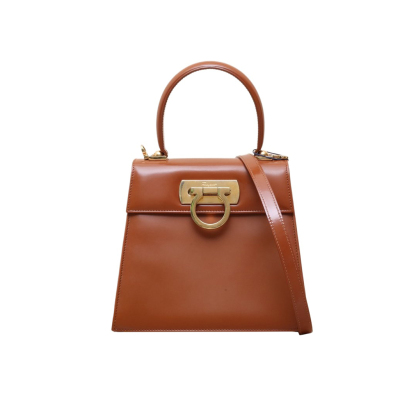 FERRAGAMO Vintage Box Leather Museum Handheld and Crossbody Bag, Small Size