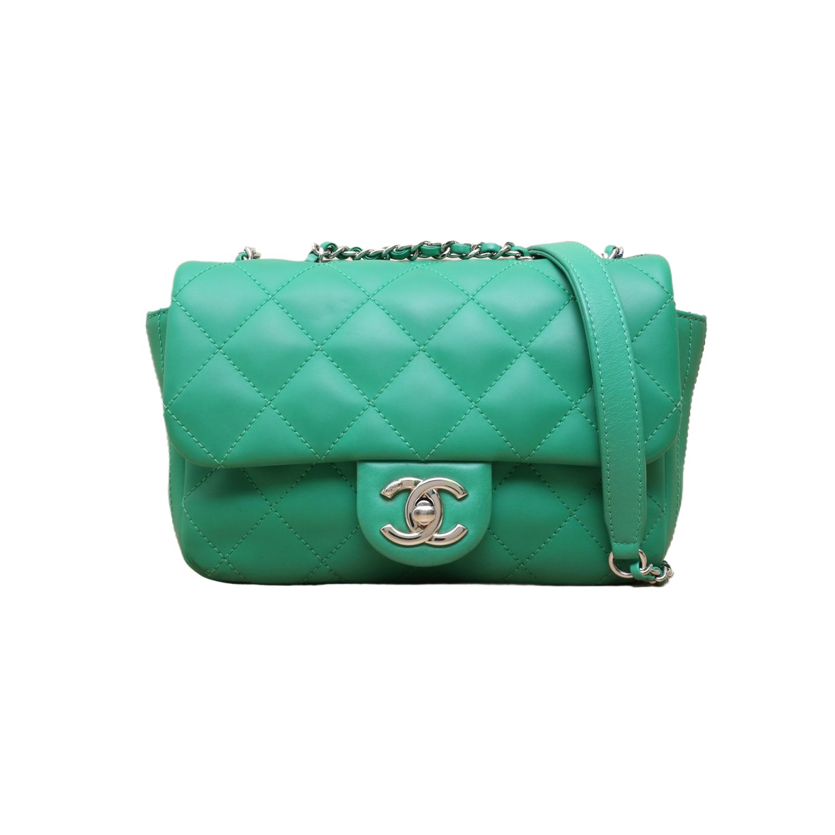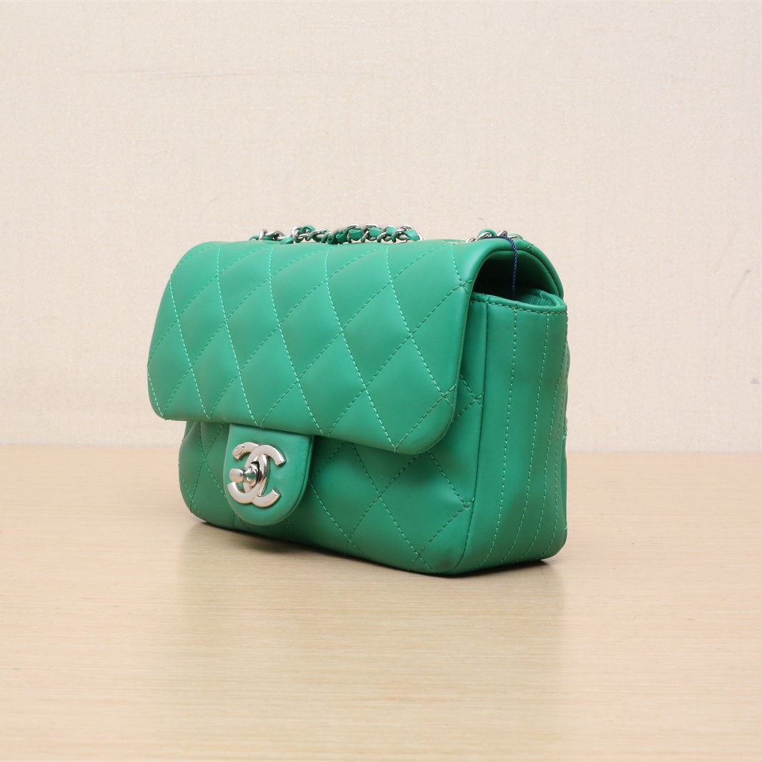 CHANEL Green 2017 Sliver Hardware cocorain Raincoat Bag, CF Classic Flap Bag, Large Mini 20cm, Rubber
