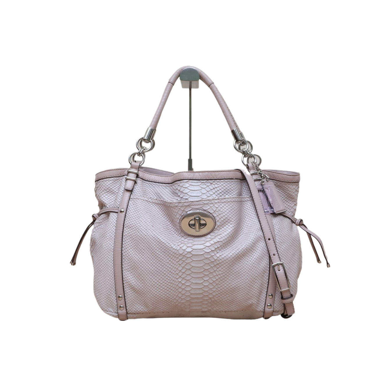 *COACH Light purple-pink PU Sliver Hardware Handheld Large Tote Bag with detachable shoulder strap and chain