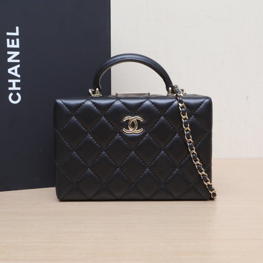CHANEL Black Chip Gold Hardware 24K Hard Case Handheld Cosmetic Case